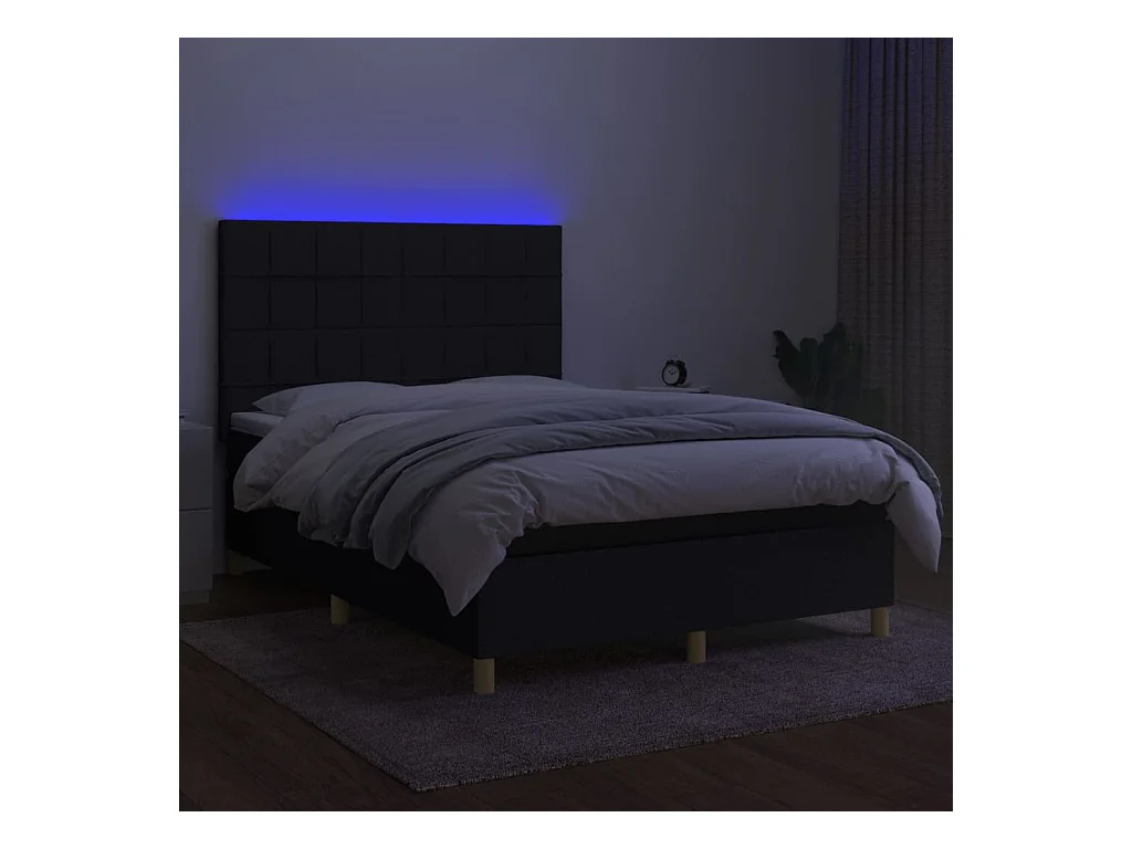 Lit à sommier tapissier avec matelas et LED Noir 140x200 Tissu 3