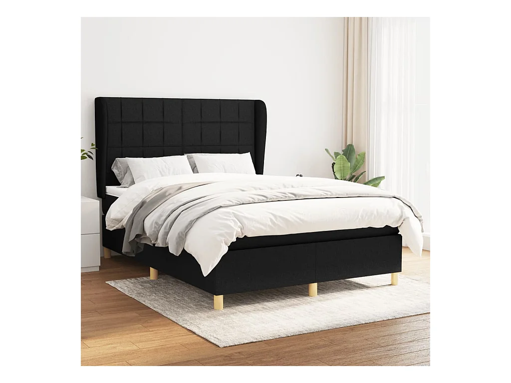 Lit à sommier tapissier avec matelas Noir 140x190 cm Tissu
