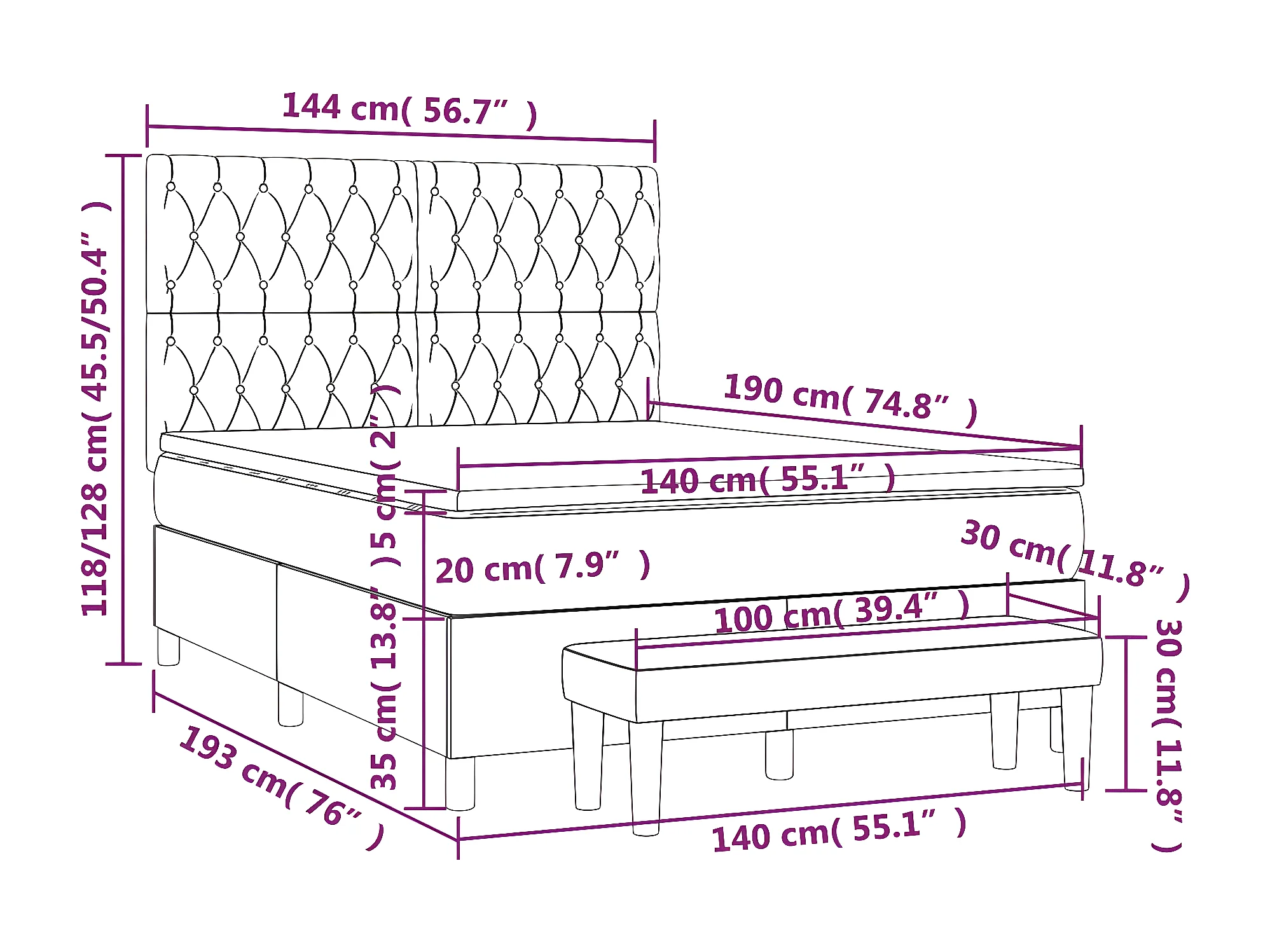 Lit à sommier tapissier avec matelas Noir 140x190 cm Velours