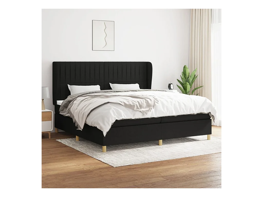 Lit à sommier tapissier avec matelas Noir 200x200 Tissu 8