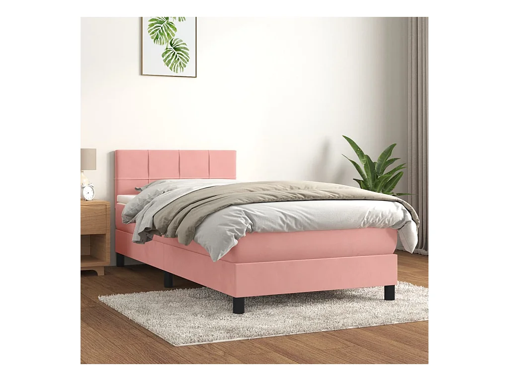 Lit à sommier tapissier avec matelas Rose 90x190 Velours