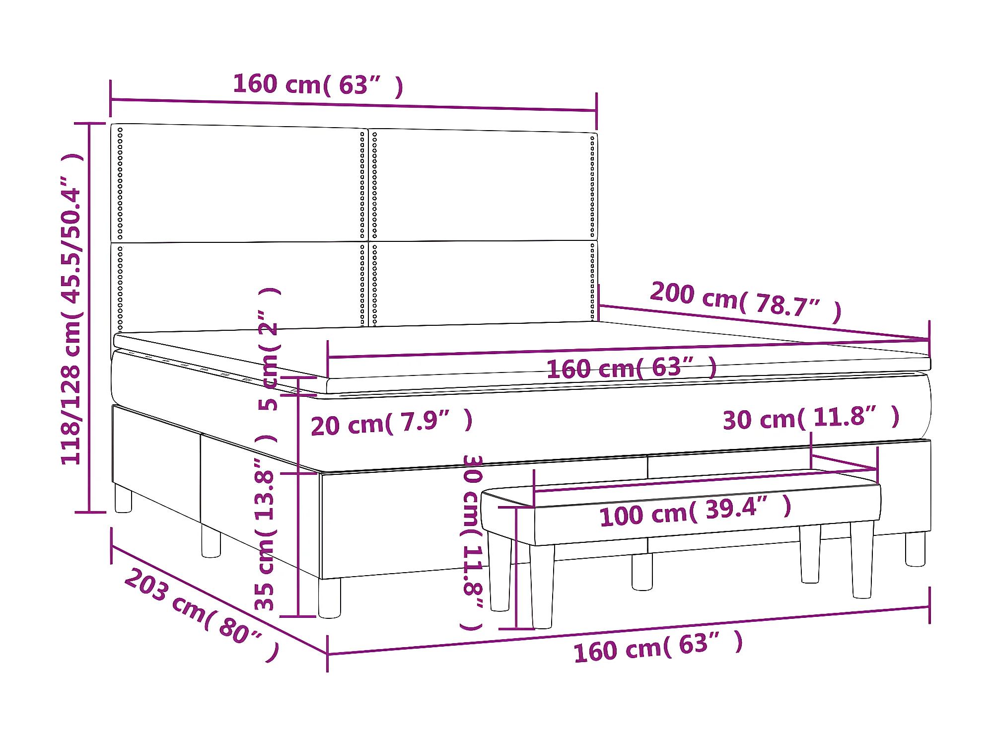 Lit à sommier tapissier et matelas Vert foncé 160x200cm Velours