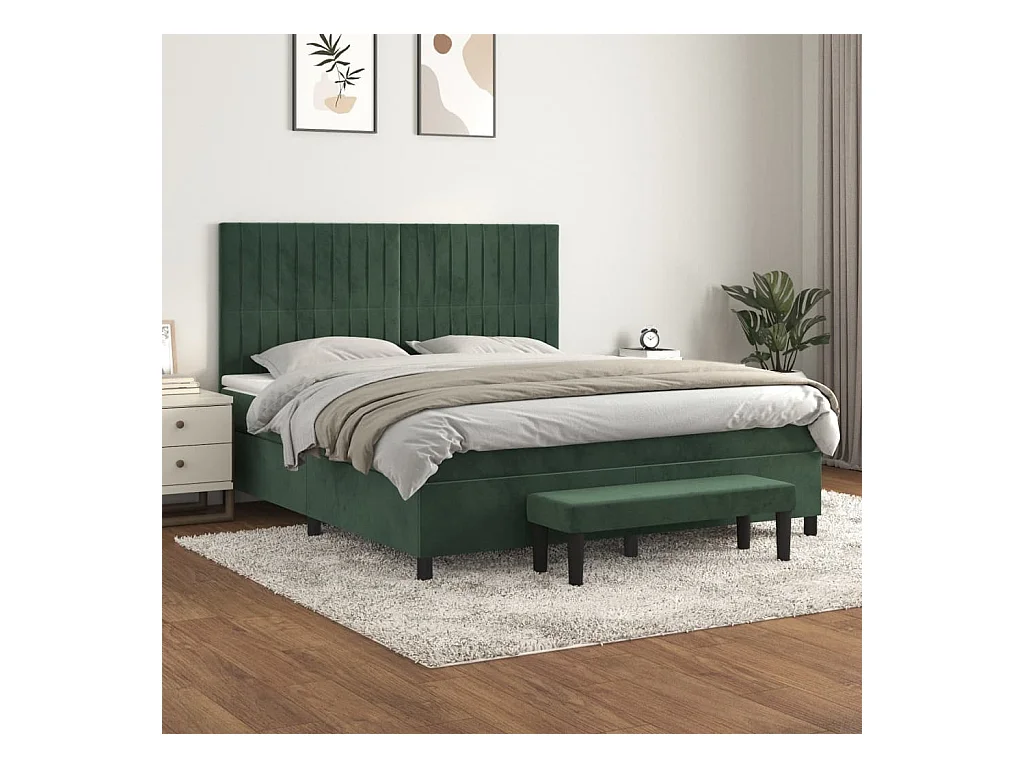 Boxspring met matras fluweel donkergroen 160x200 cm