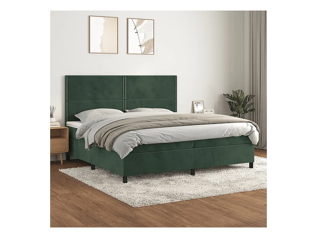 Lit à sommier tapissier et matelas Vert foncé 200x200 Velours 5