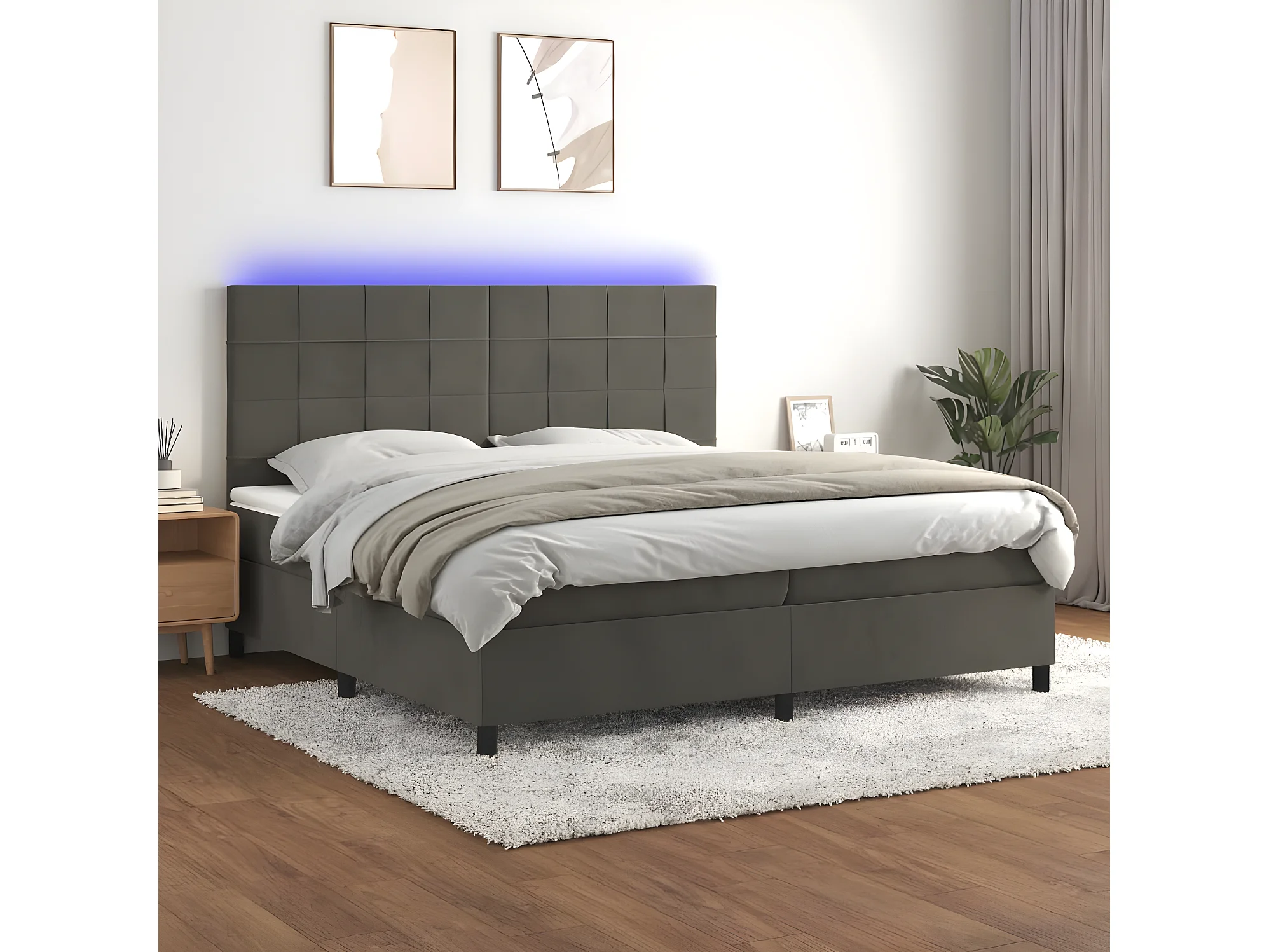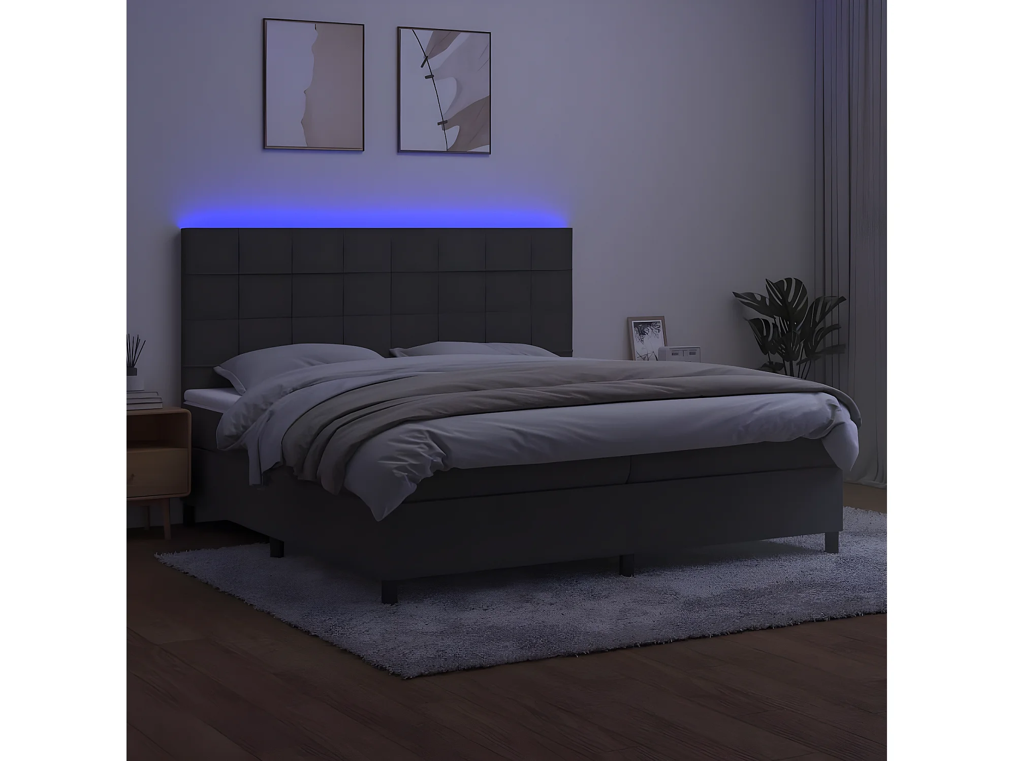 Lit à sommier tapissier matelas et LED Gris foncé 200x200 Velours
