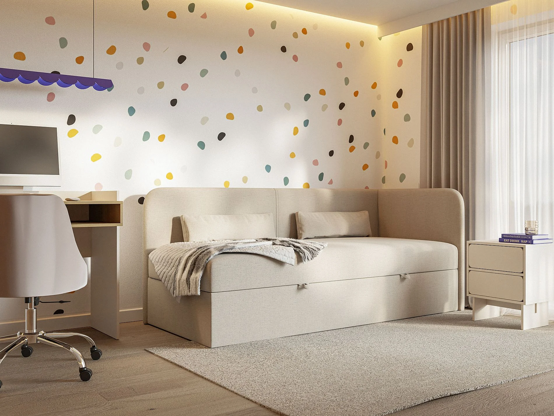 Lit ado avec rangement - olive - beige clair - CALMMO