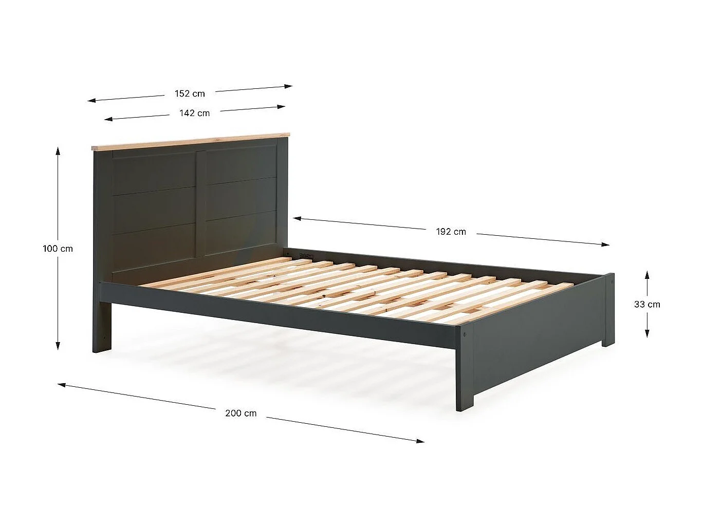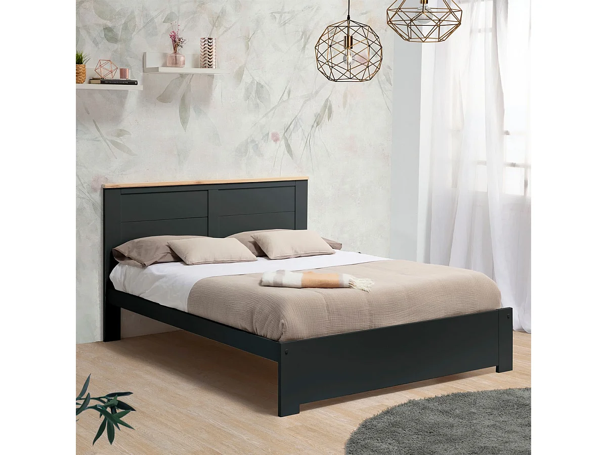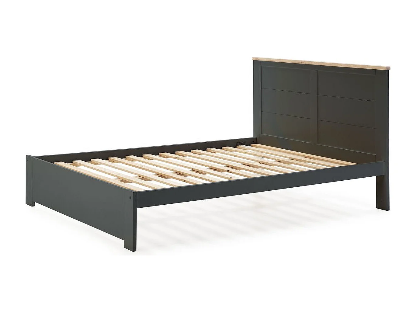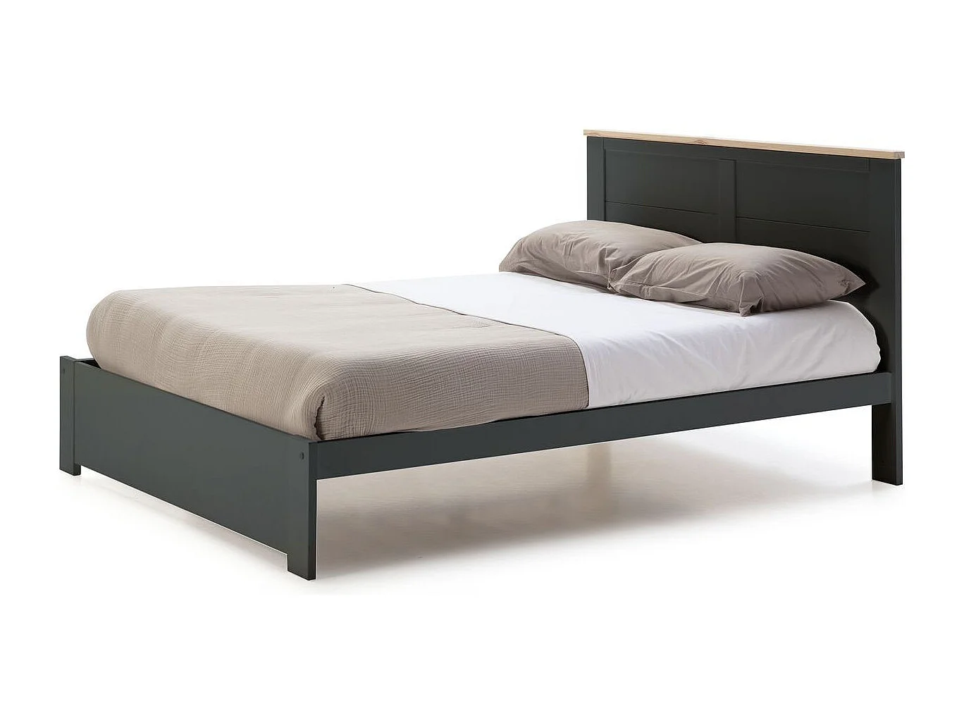 Lit adulte 140x190 cm avec tête de lit en bois gris anthracite - Nevea
