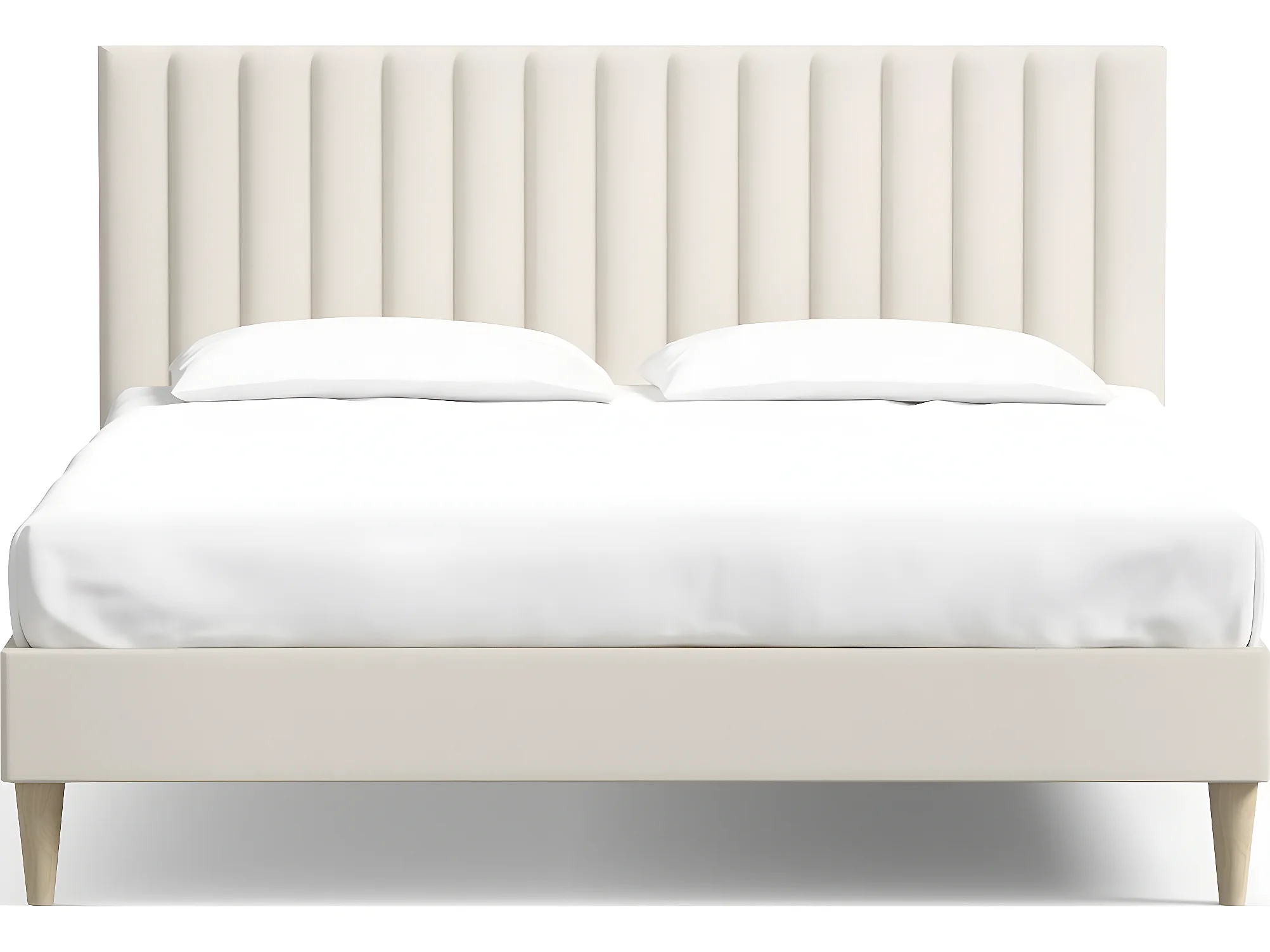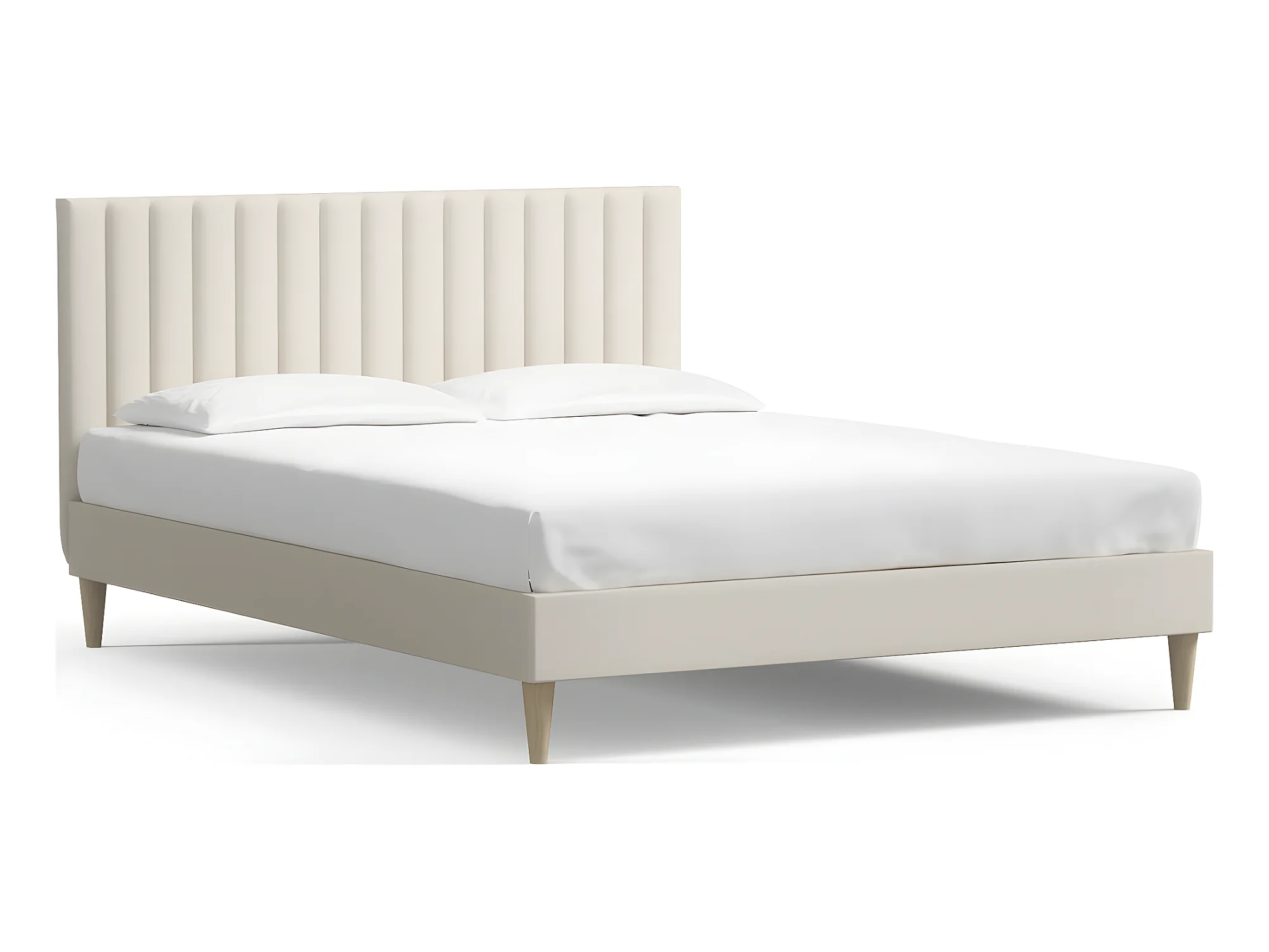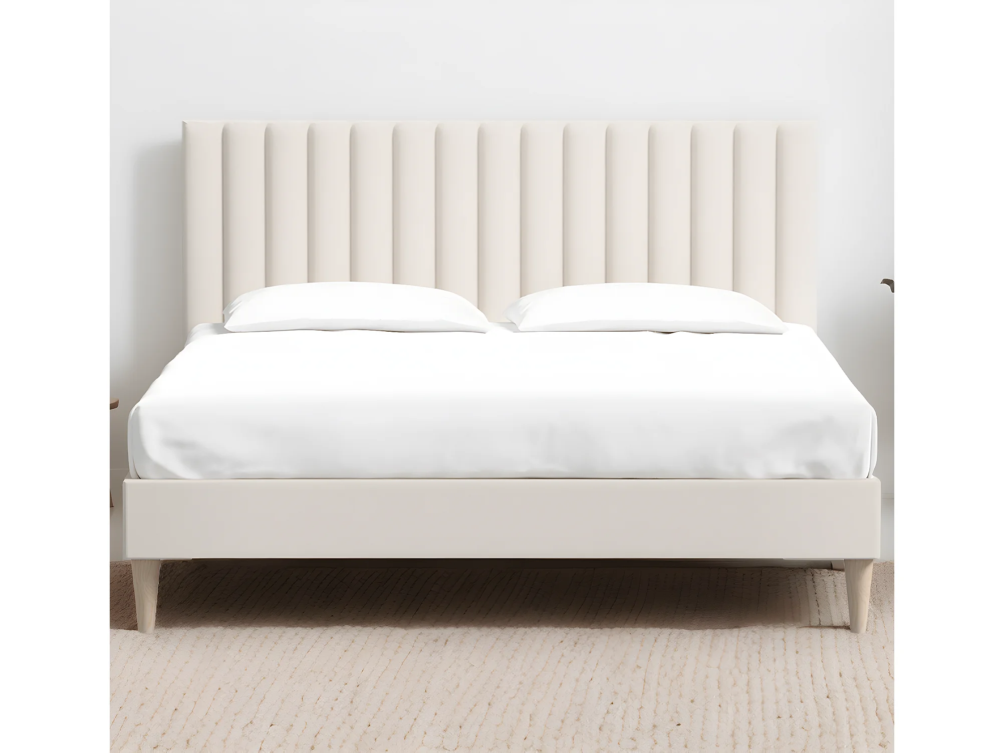 Lit adulte 140x190 cm en velours beige avec tête de lit matelassée - Eliot
