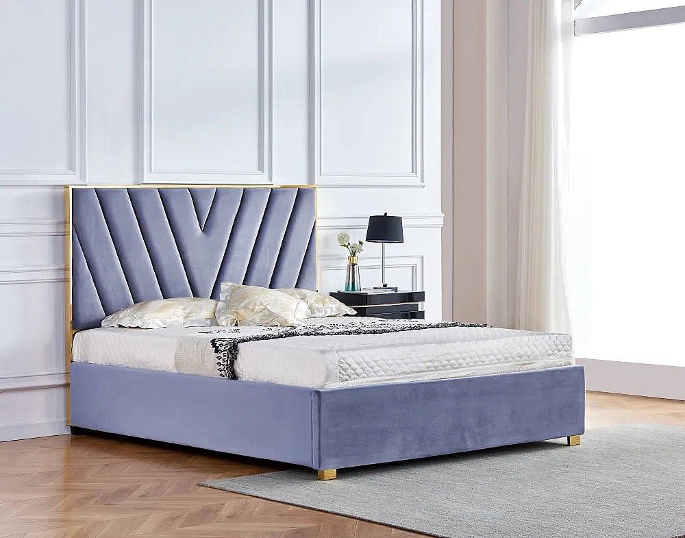 Lit adulte 160x200 cm VERA en velours avec sommier intégré
