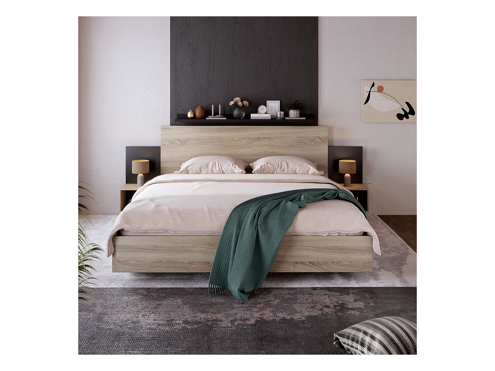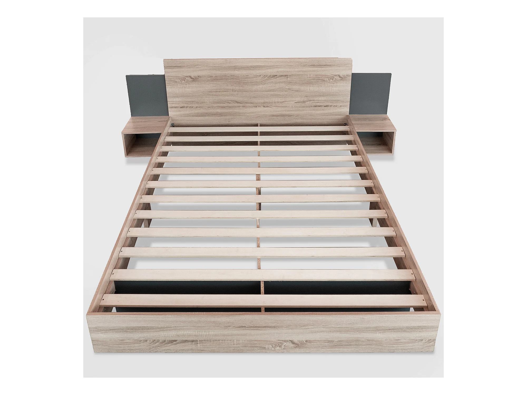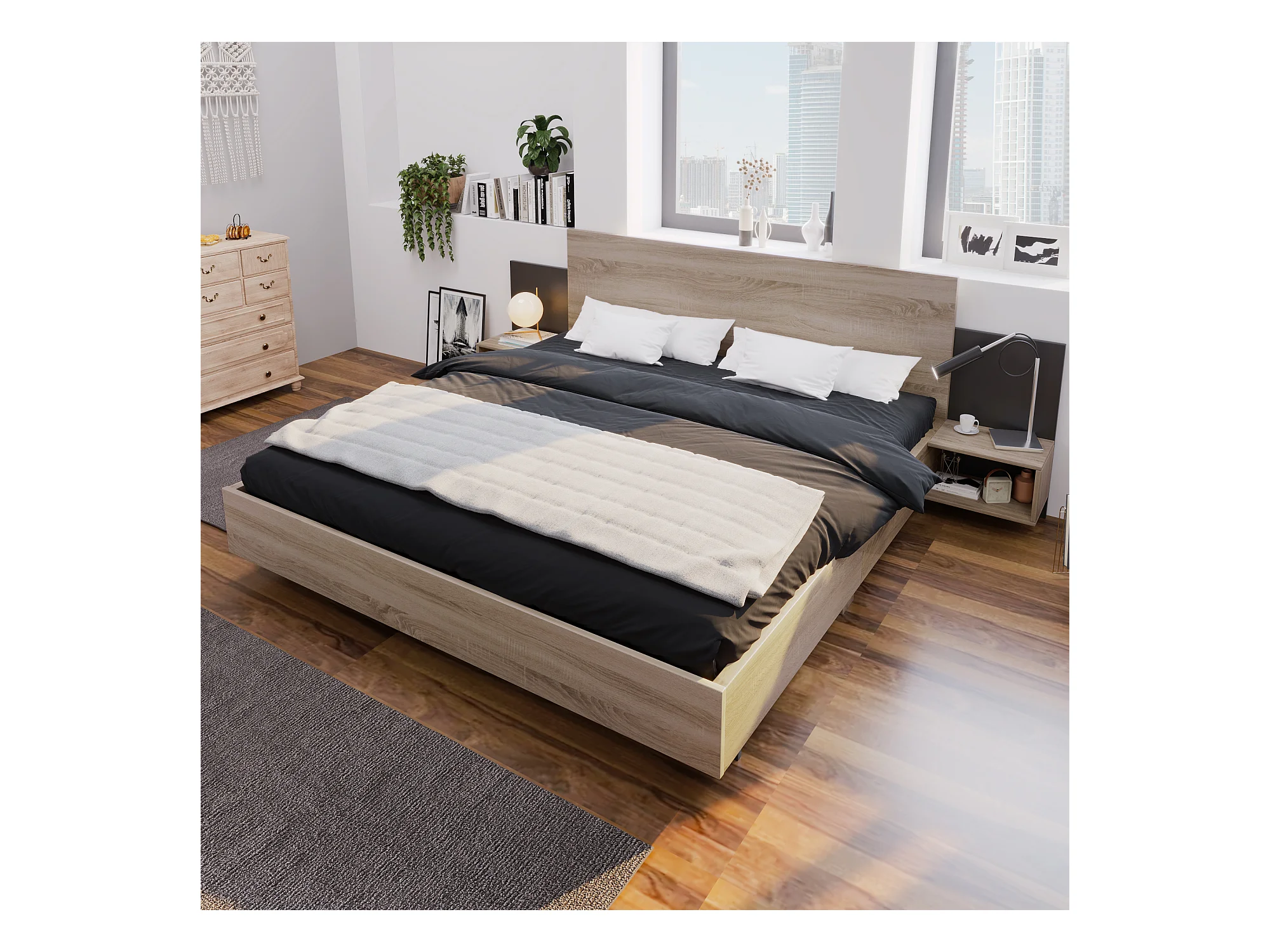 Lit adulte 160x200cm avec 2 compartiments de rangement,cadre en bois, sommier inclus, sans matelas