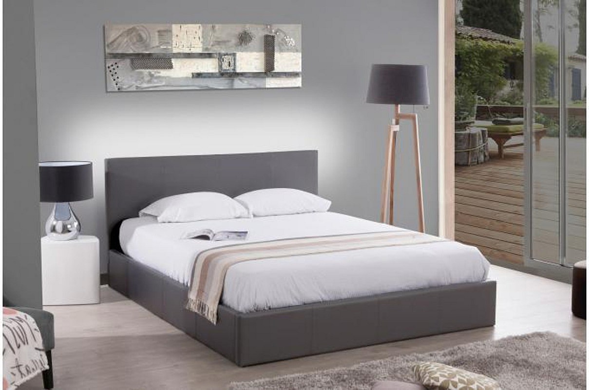 Lit 2 places 140x190 cm MELBOURNE simili cuir avec sommier intégré