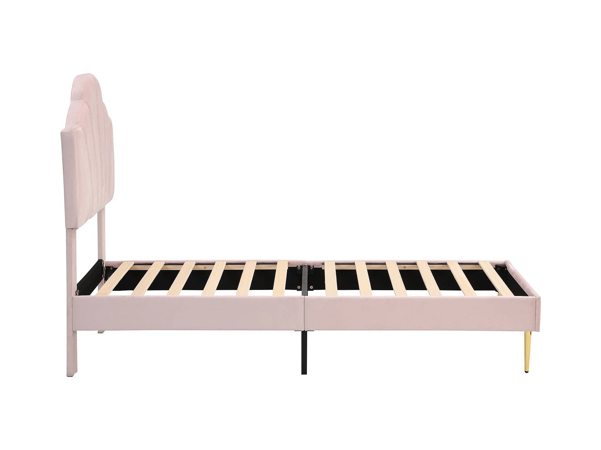 Lit adulte 90 x 200 cm - Lit simple avec tête de lit réglable et sommier à lattes - velours rose