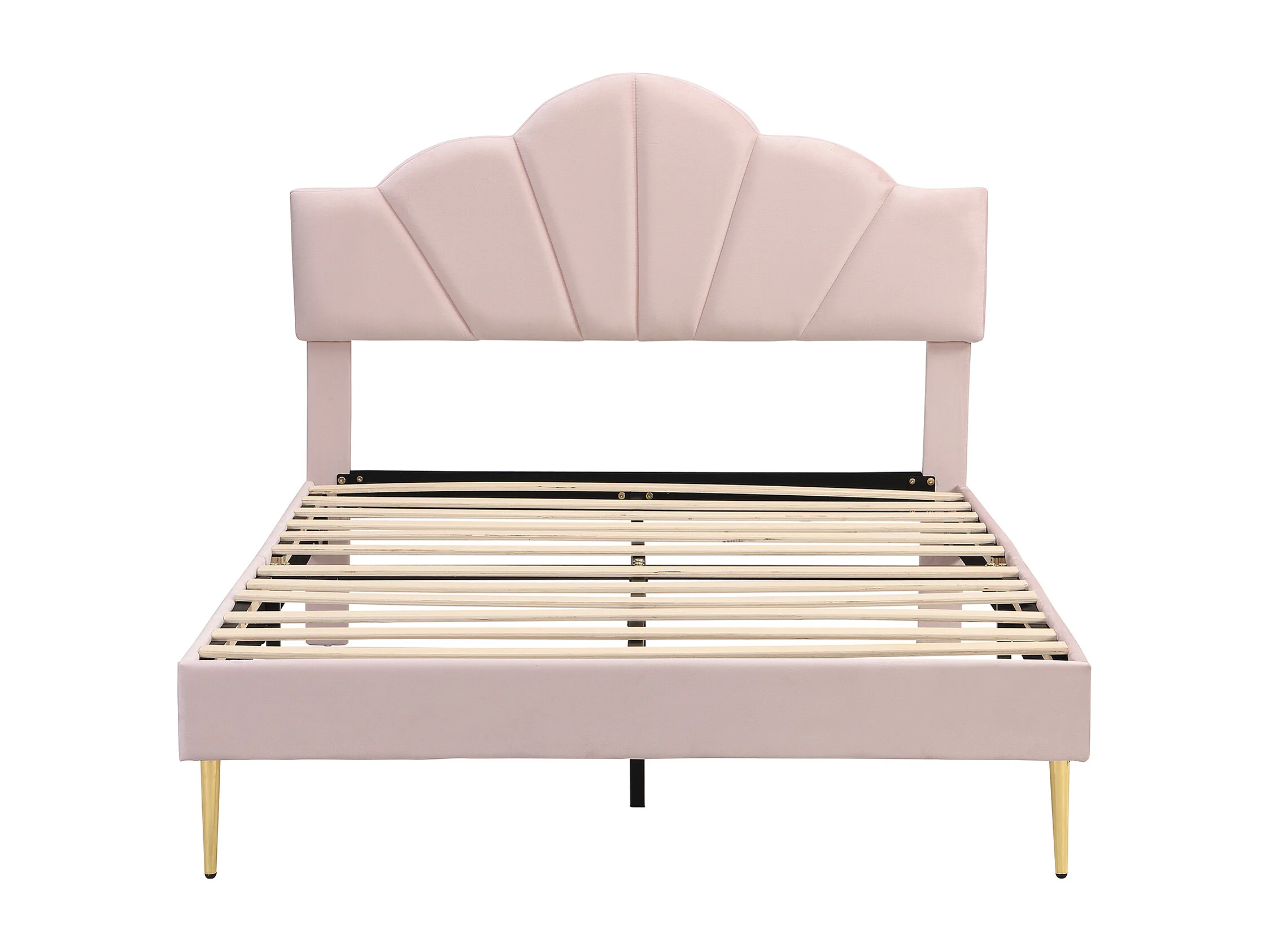 Lit adulte 140x190 cm avec sommier - tête de lit réglable en hauteur et pieds en métal - bois - velours rose (sans matelas)