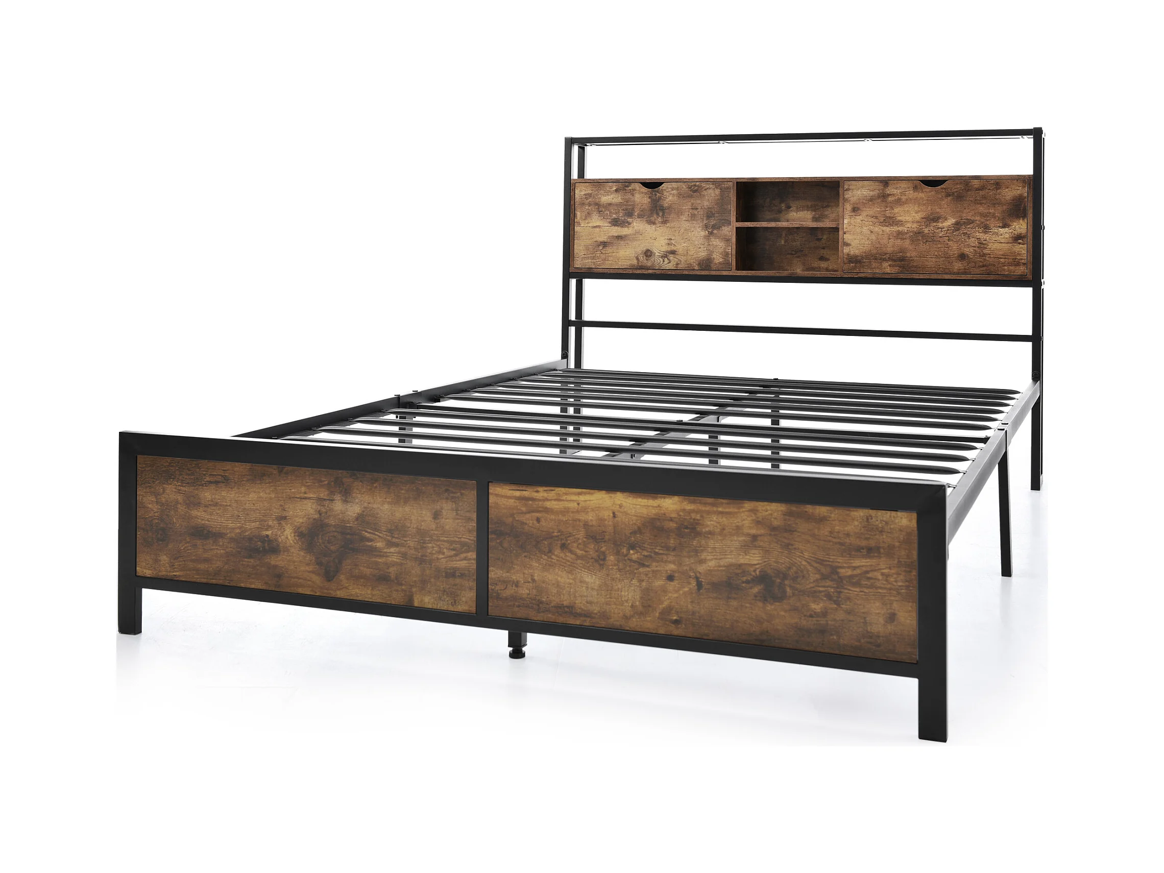 Lit adulte 140x200 cm avec sommier métallique - tête de lit rangement - cadre de lit en métal - marron (sans matelas)