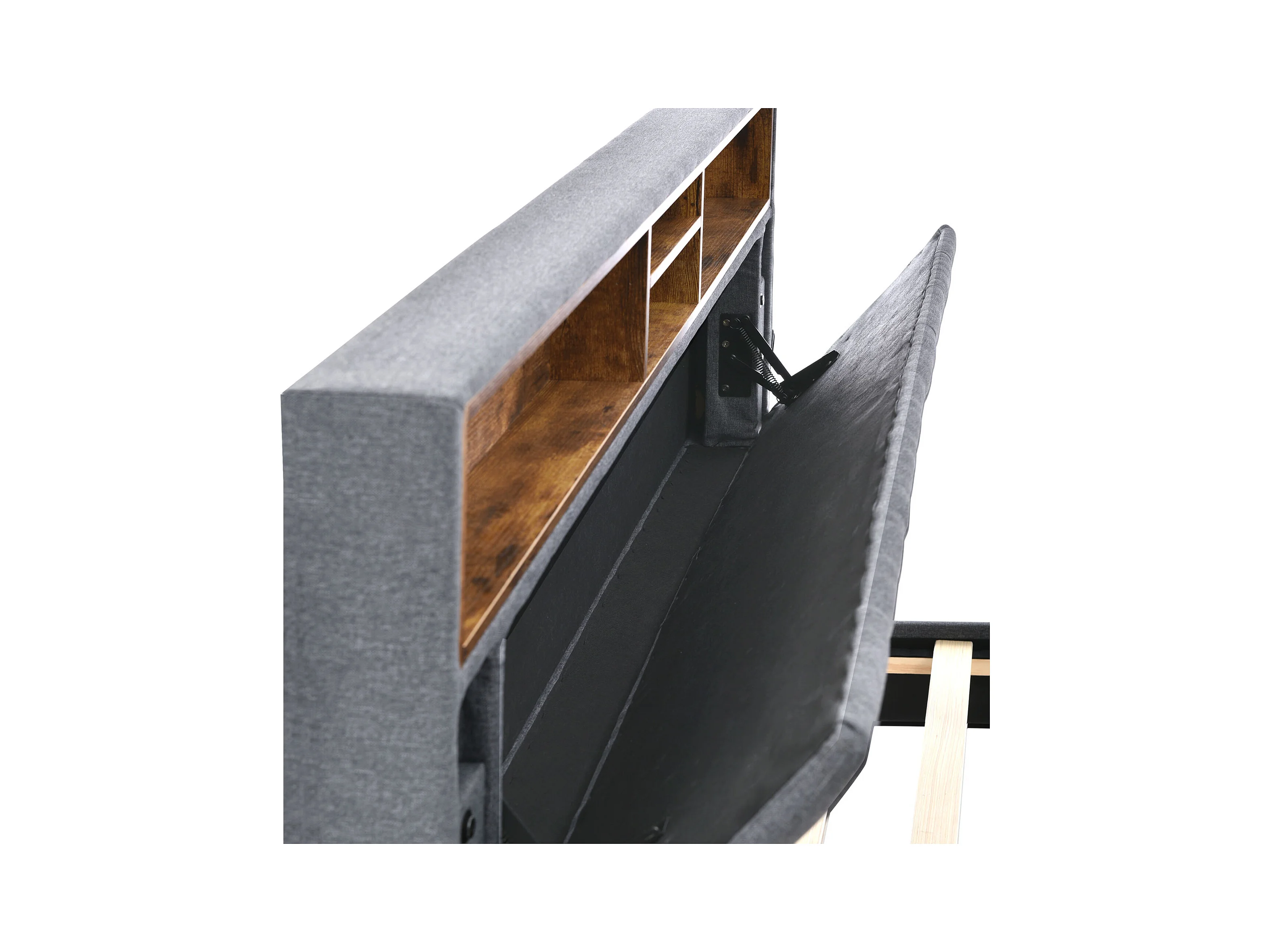 Lit adulte 140x200 cm avec sommier - tête de lit rangement avec LED - bois - gris (sans matelas)