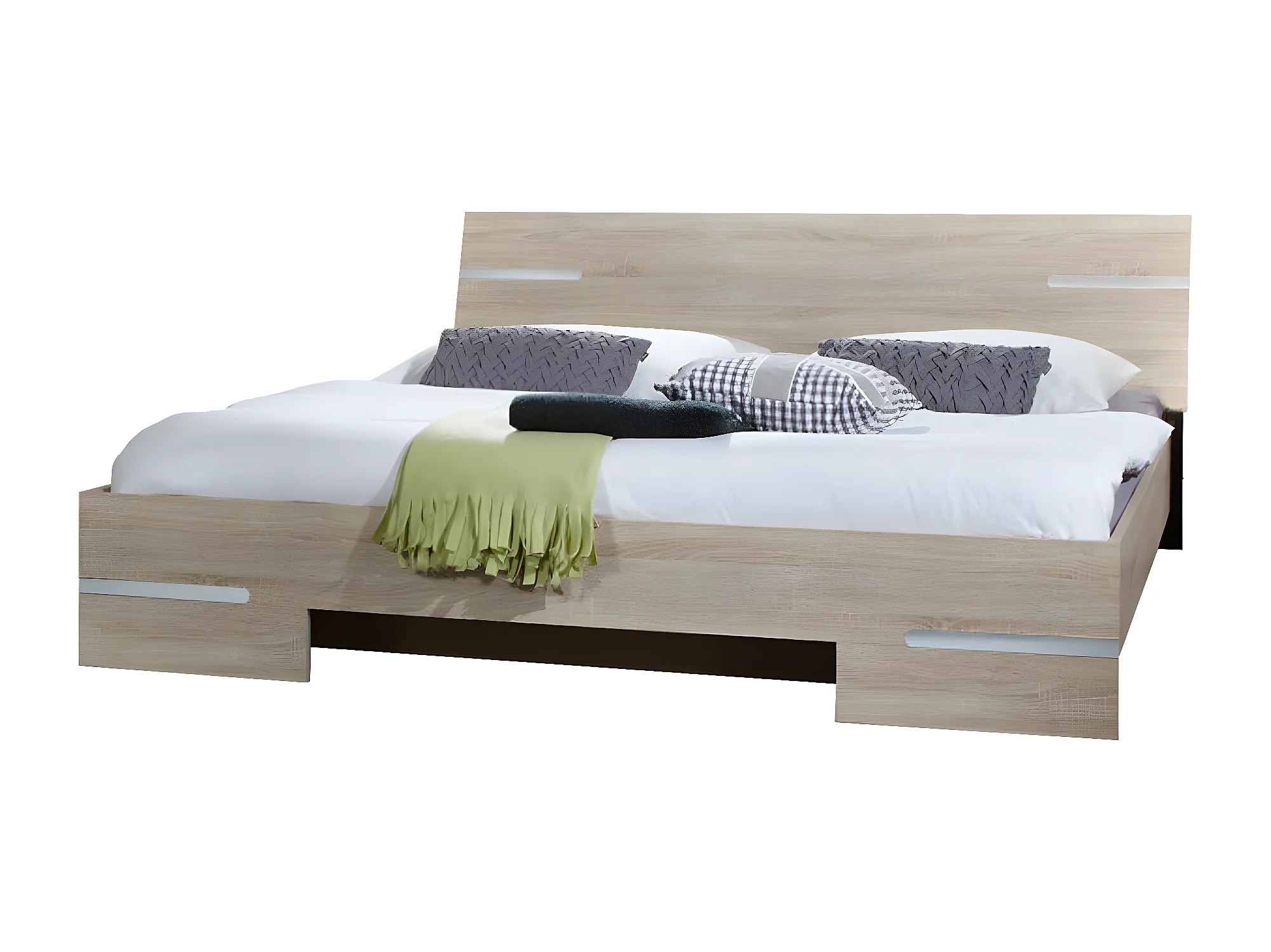 Lit adulte double + chevets coloris imitation chêne Artisan/chrome brillant