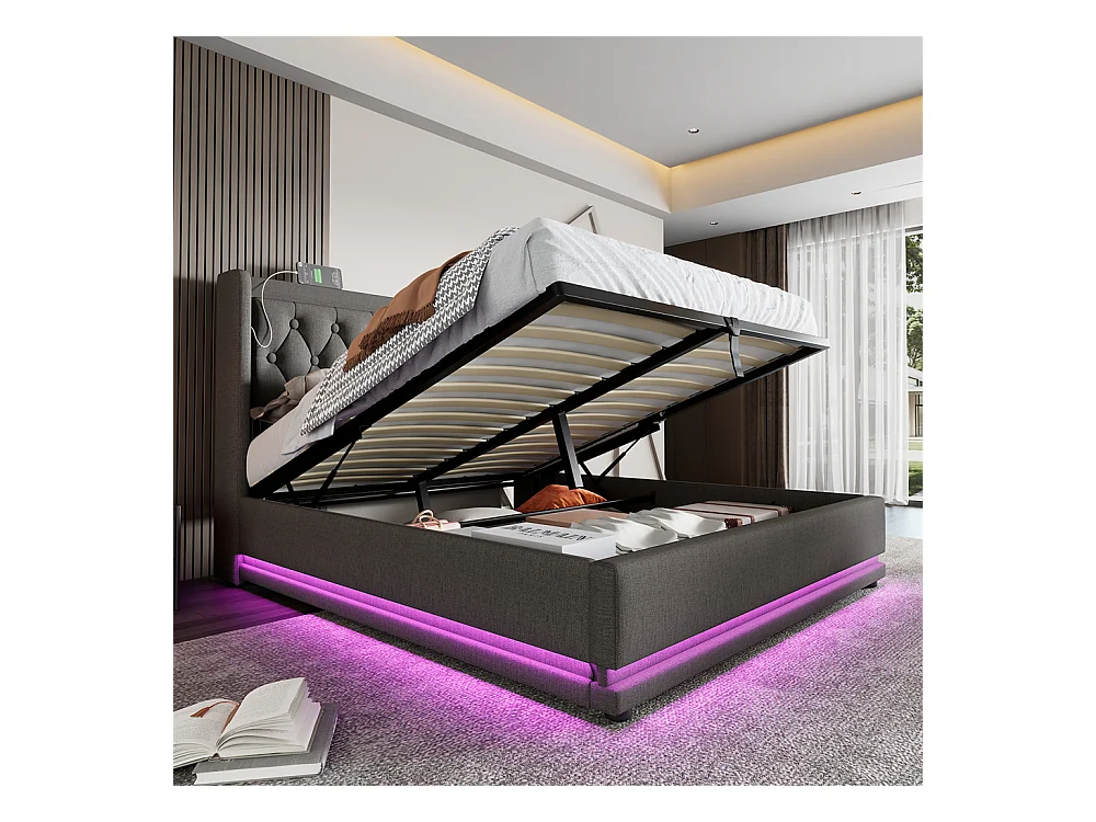 Lit adulte lit 180x200 cm lit rembourré hydraulique lit de rangement lit double coton gris