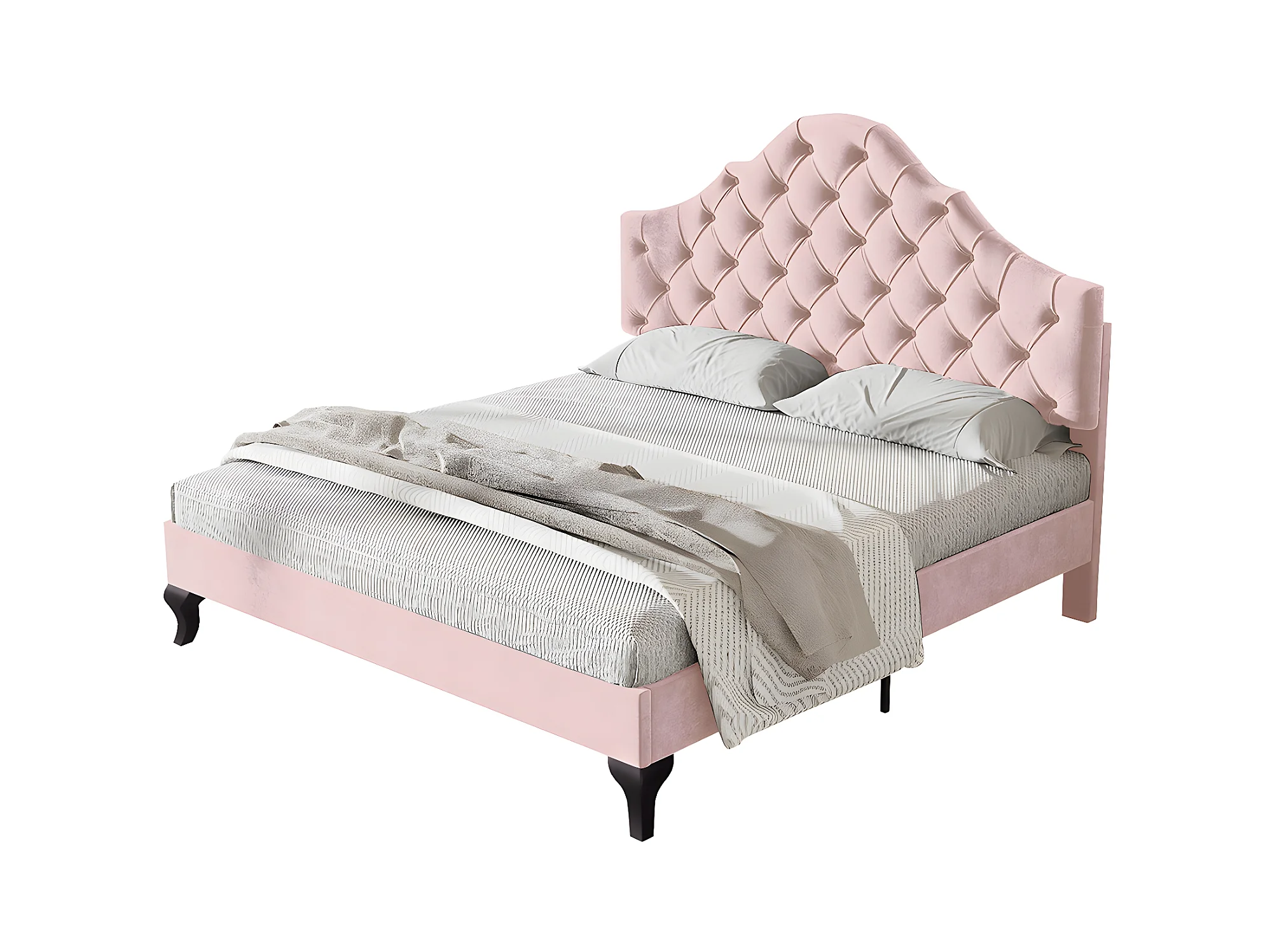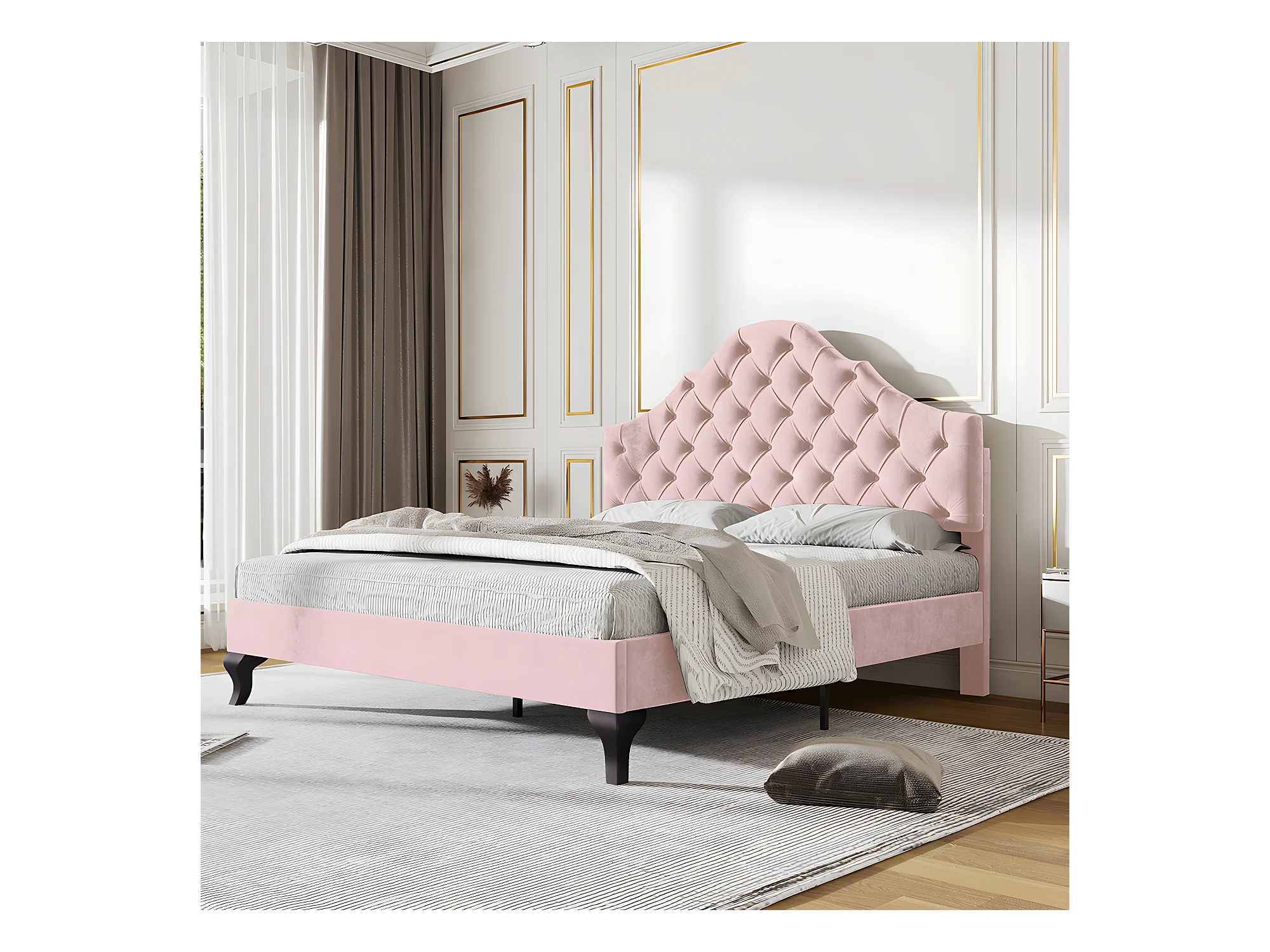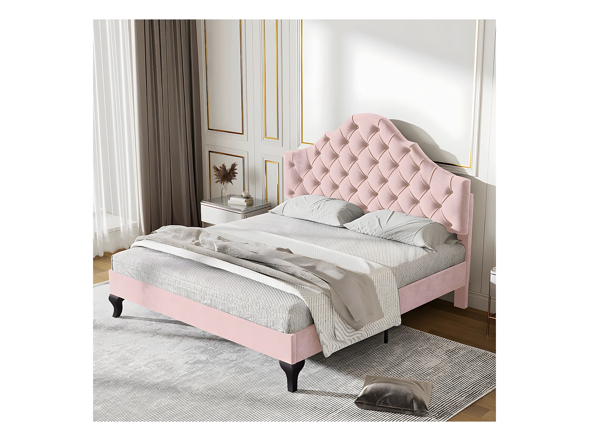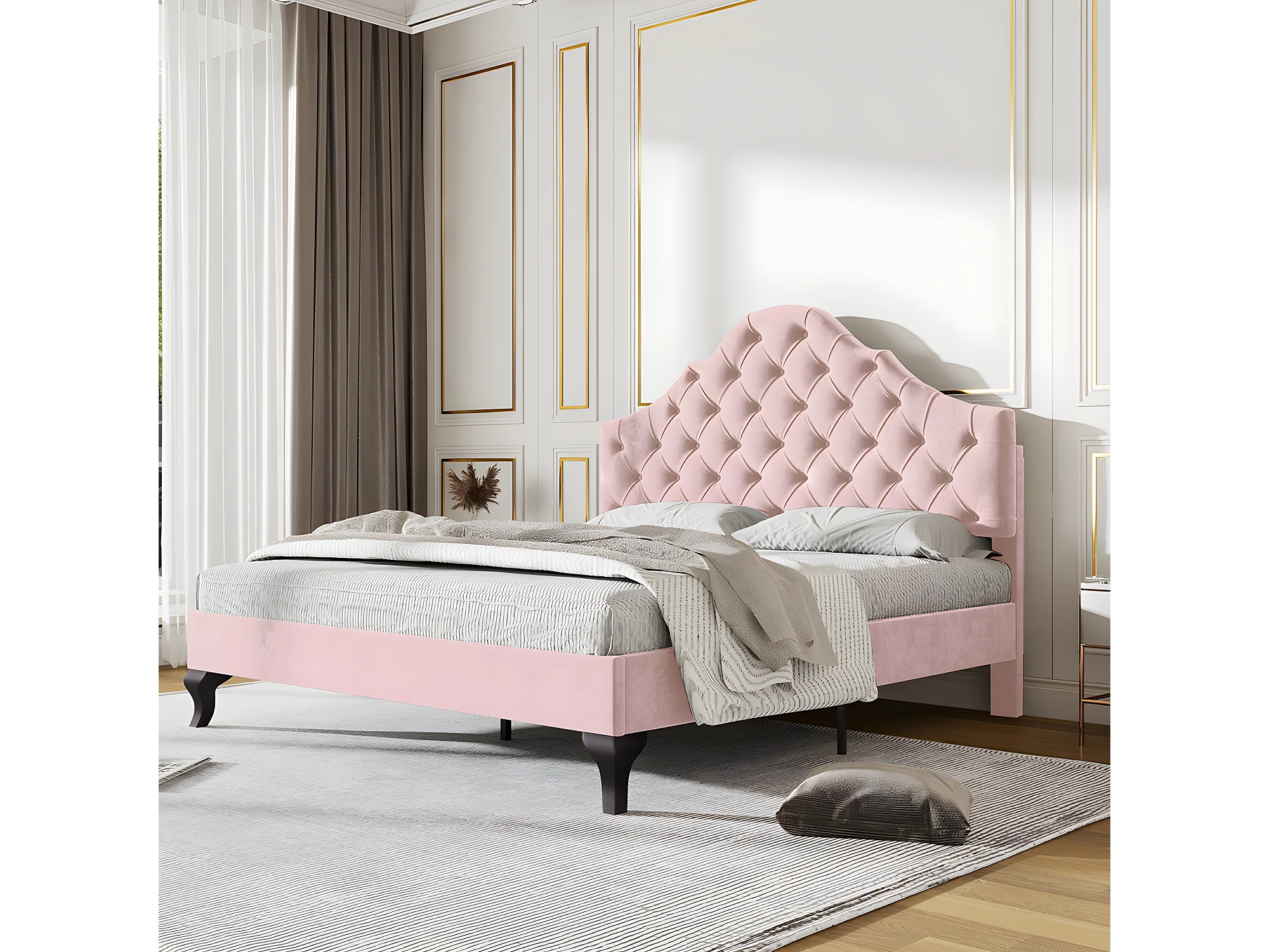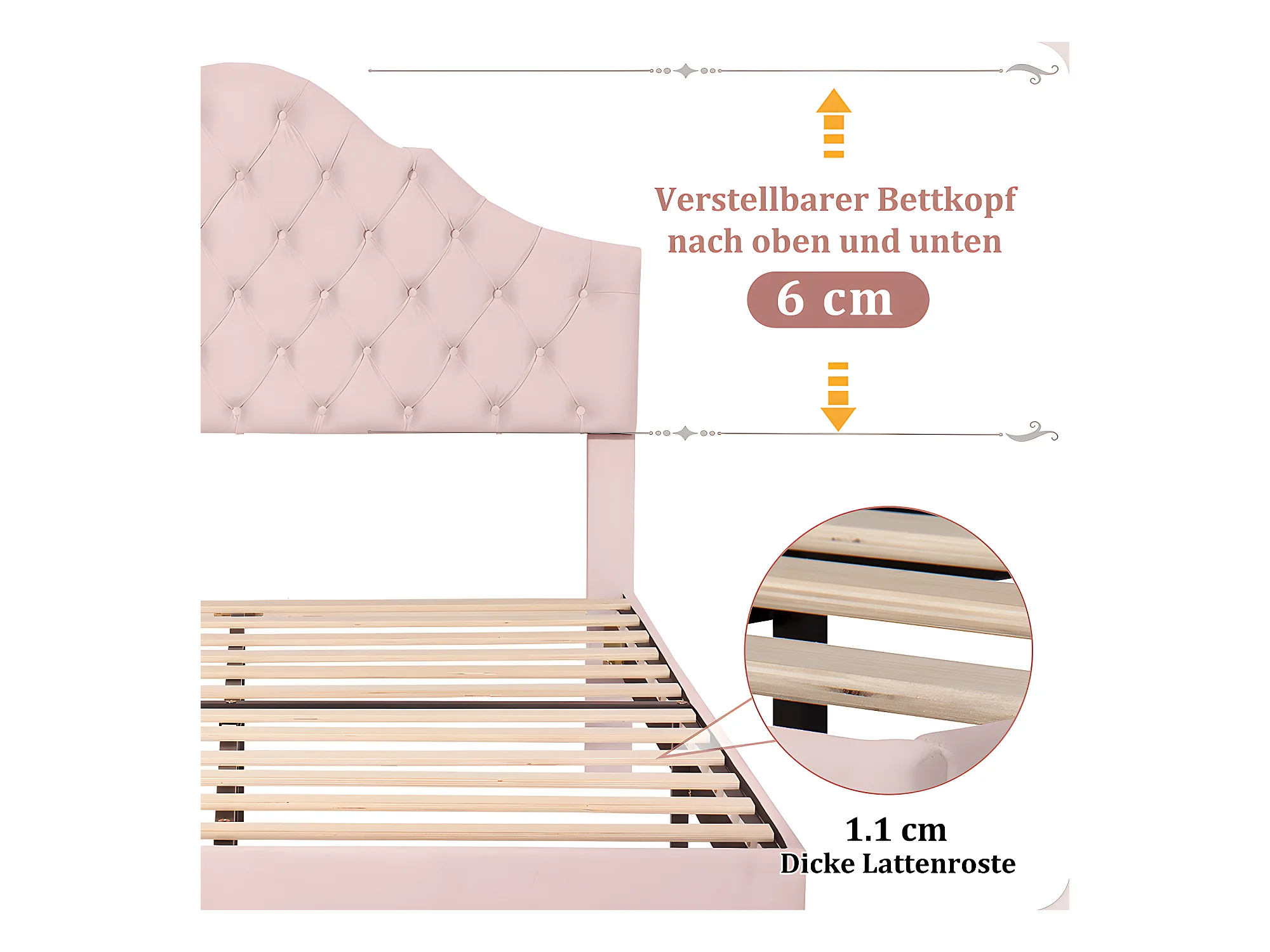 Lit adulte Lit capitonné 140x200 cm avec sommier à lattes et tête de lit lit capitonné avec tête de lit réglable en hauteur velours rose