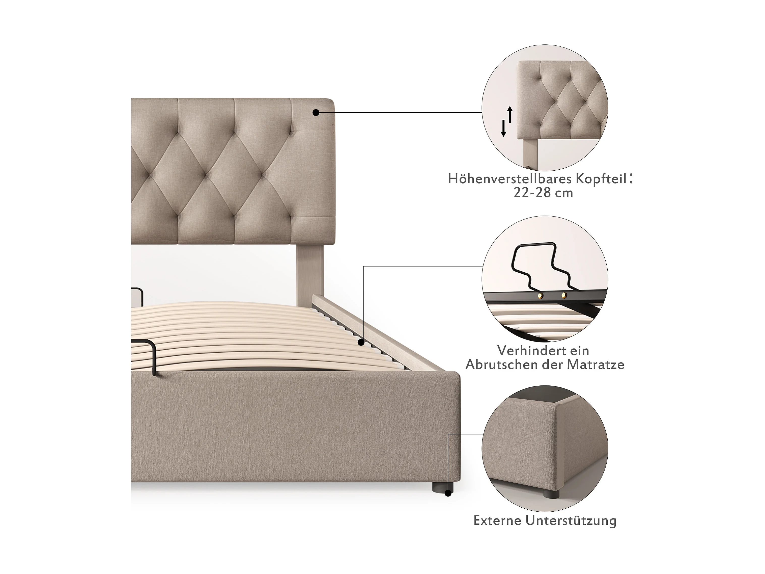 Lit adulte Lit double avec sommier, tête de lit confortable 140x200 cm - Sweiko