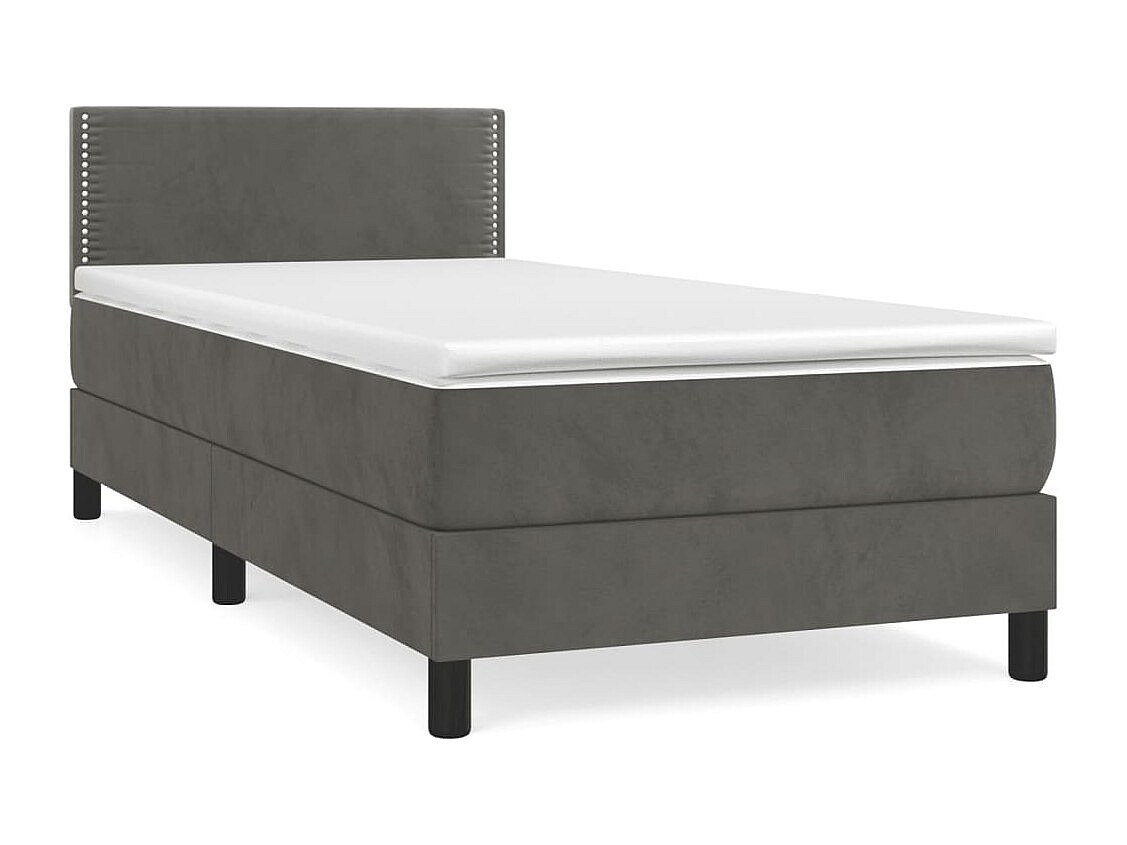 Lit adulte-Lit simple-Sommier à lattes de lit et matelas Gris foncé 90x190 cm Velours