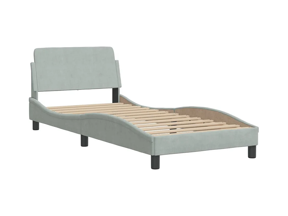 Lit adulte + matelas gris clair 80x200 cm velours FR17116