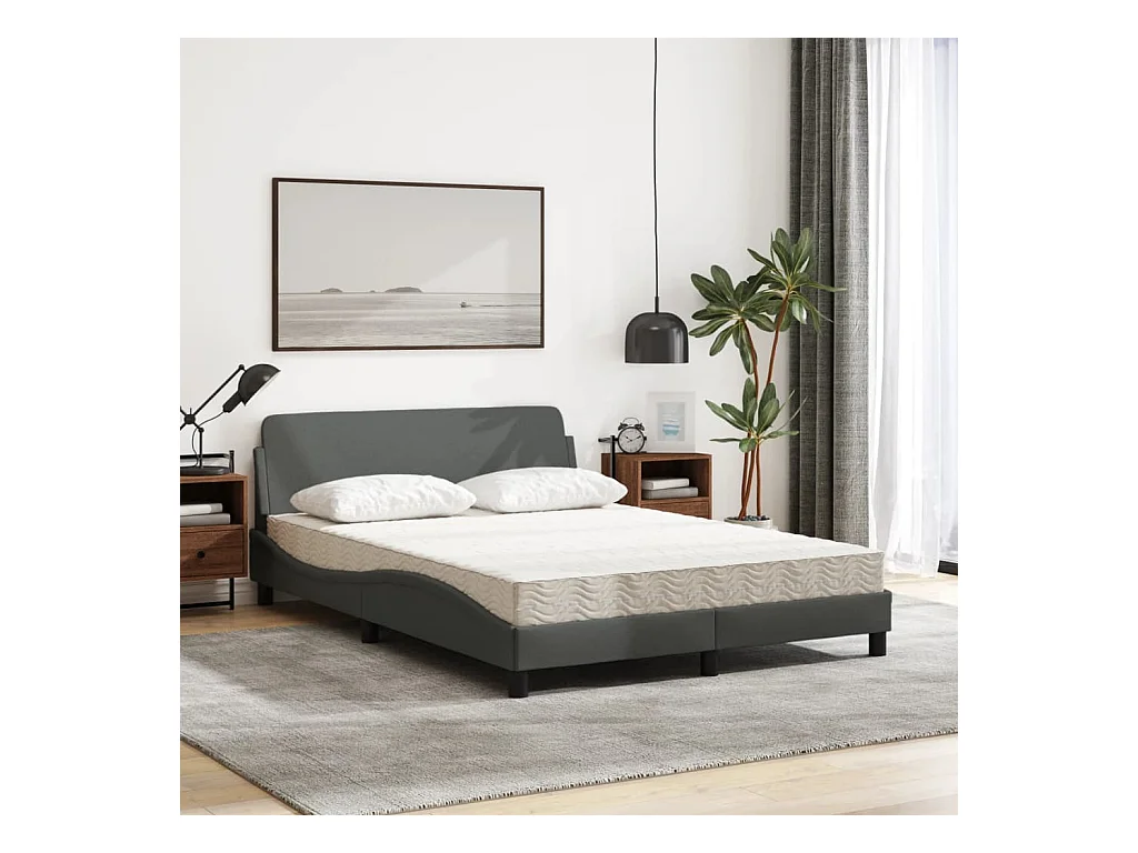 Lit adulte + matelas gris foncé 140x200 cm tissu FR57951