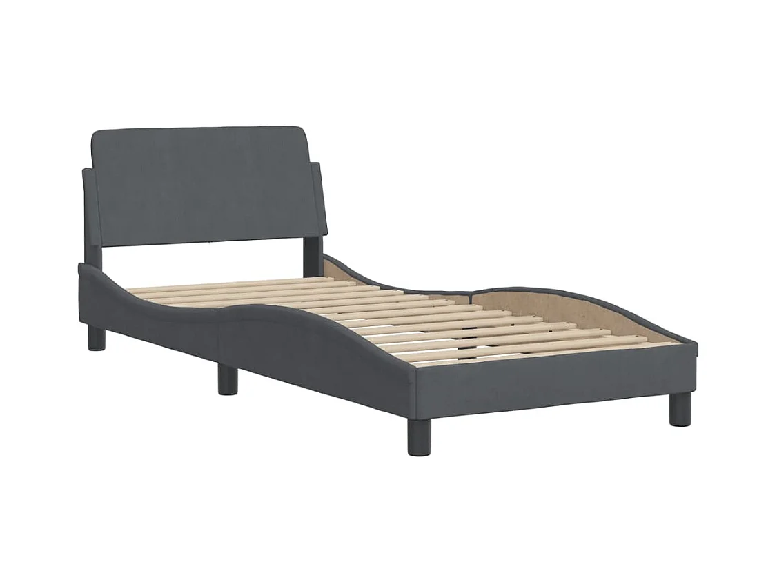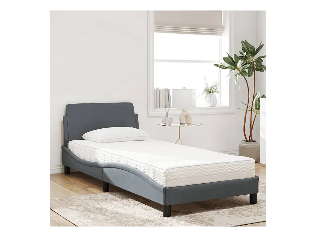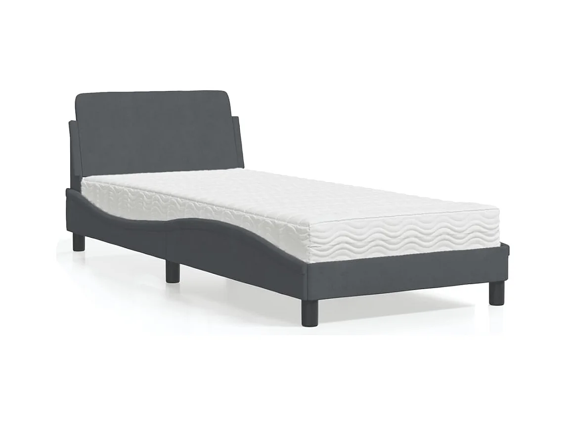 Lit adulte + matelas gris foncé 80x200 cm velours FR33969