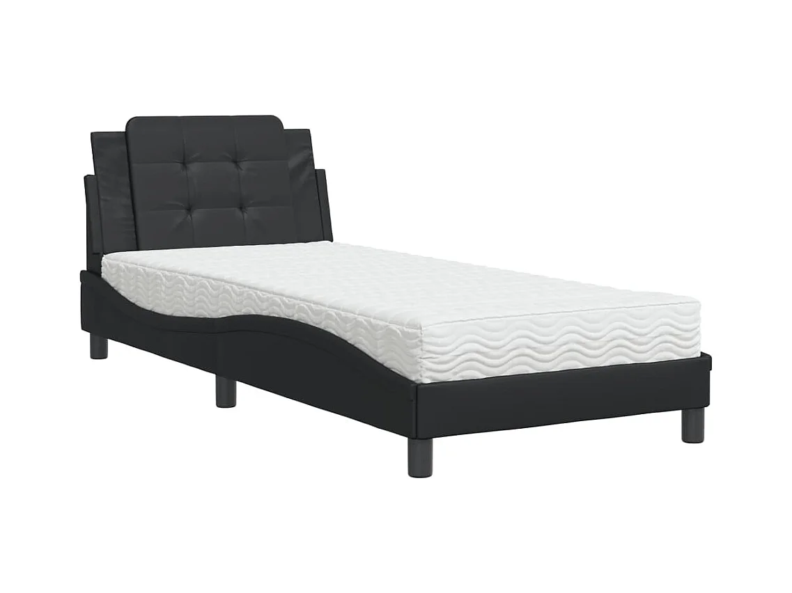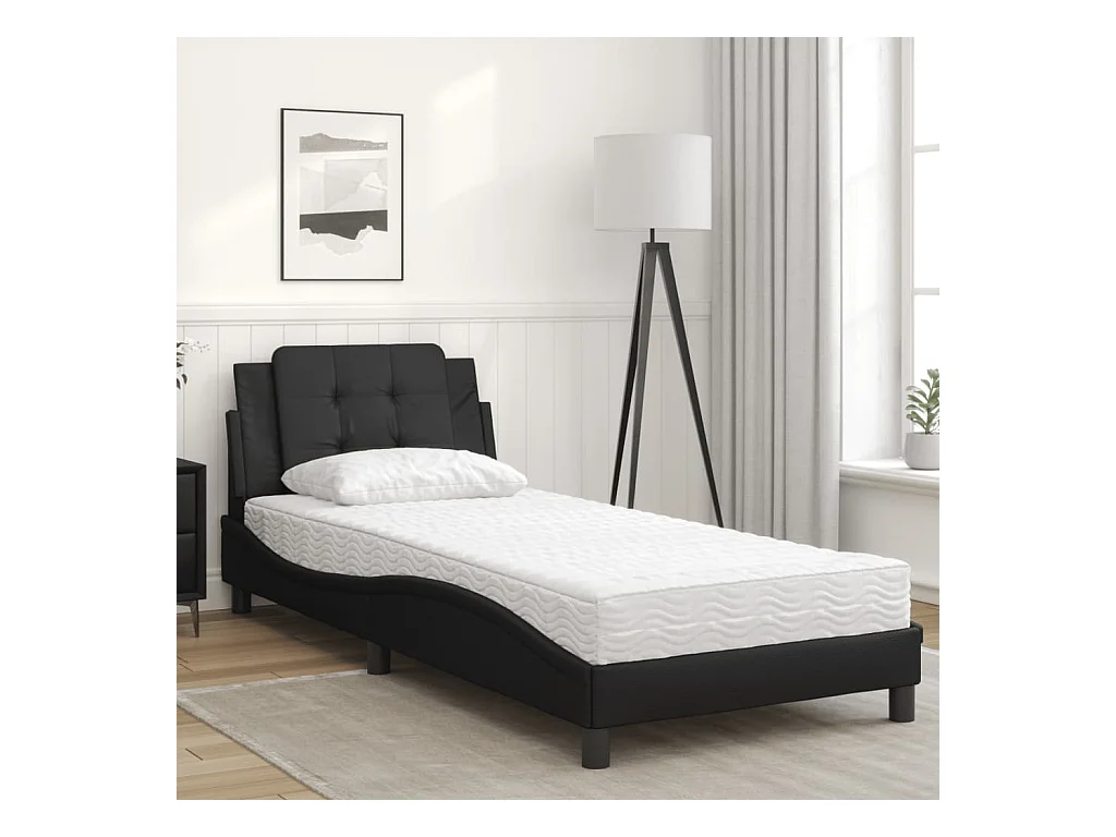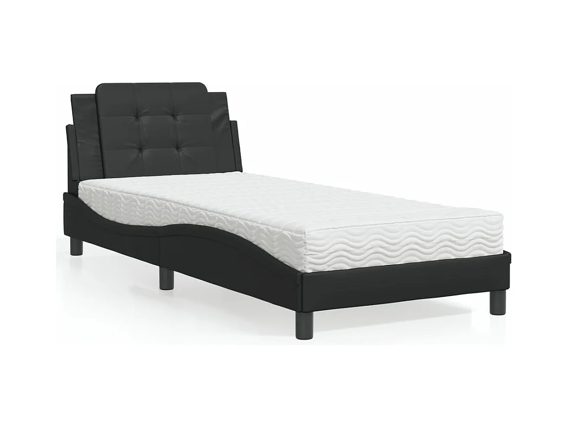 Lit adulte + matelas noir 90x190 cm similicuir FR12205