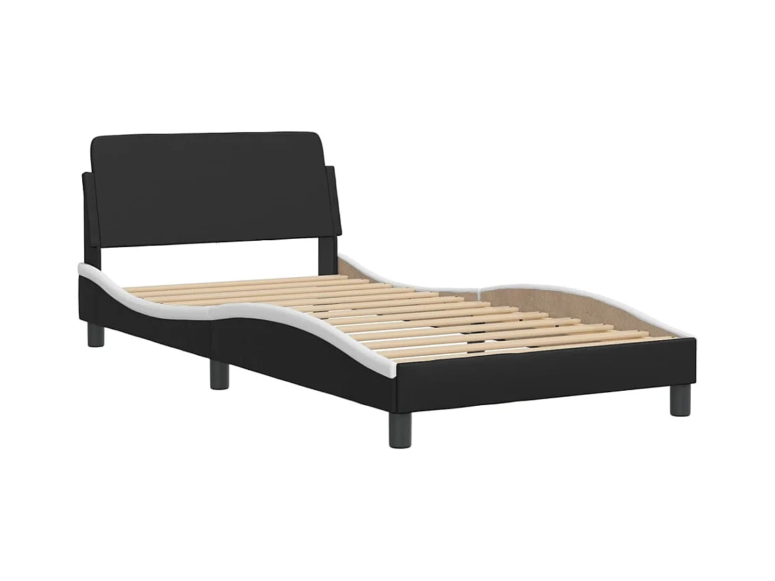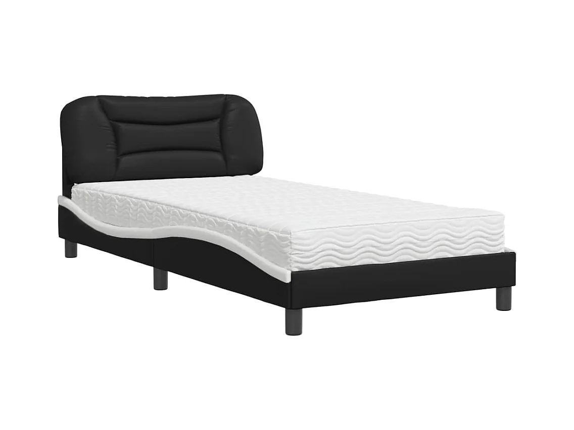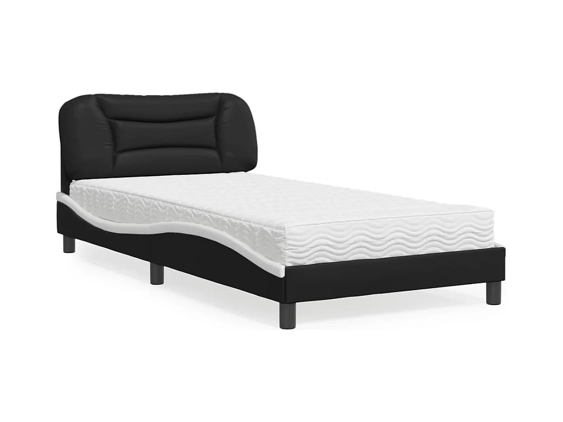 Lit adulte + matelas noir et blanc 100x200 cm similicuir FR79075
