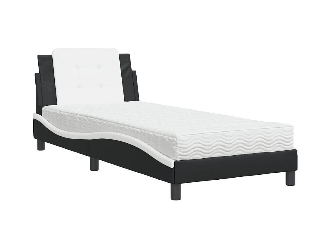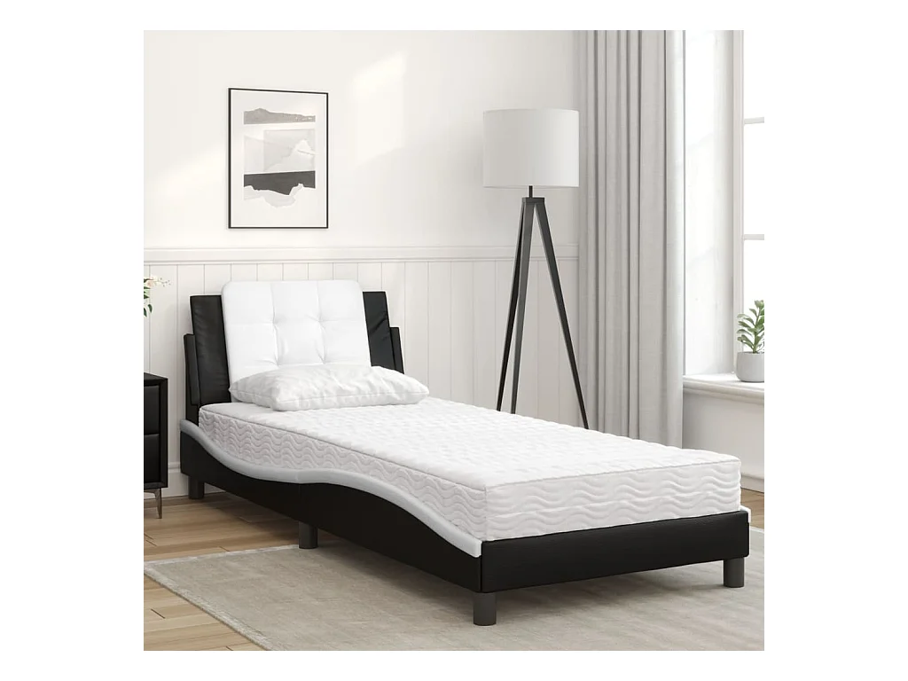 Lit adulte + matelas noir et blanc 90x190 cm similicuir FR88161