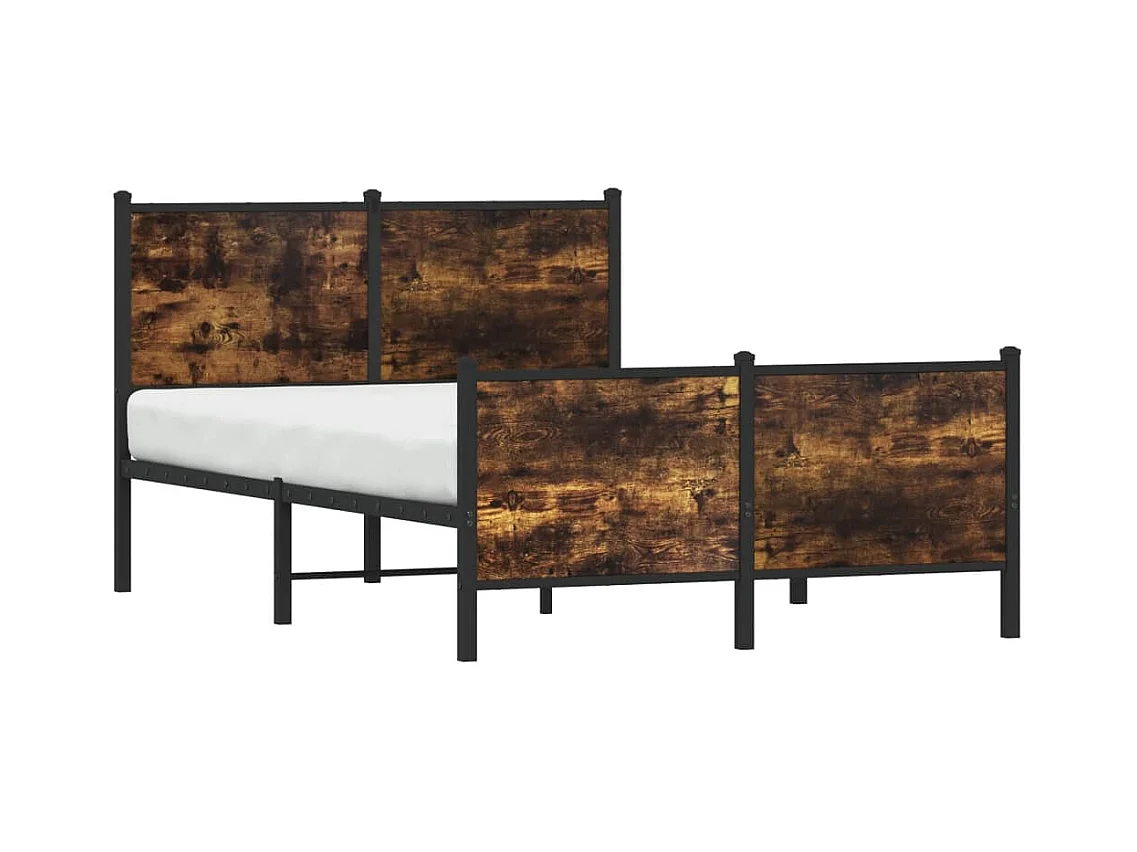 Lit adulte métal avec tête de lit chêne fumé 120x200 cm FR191254