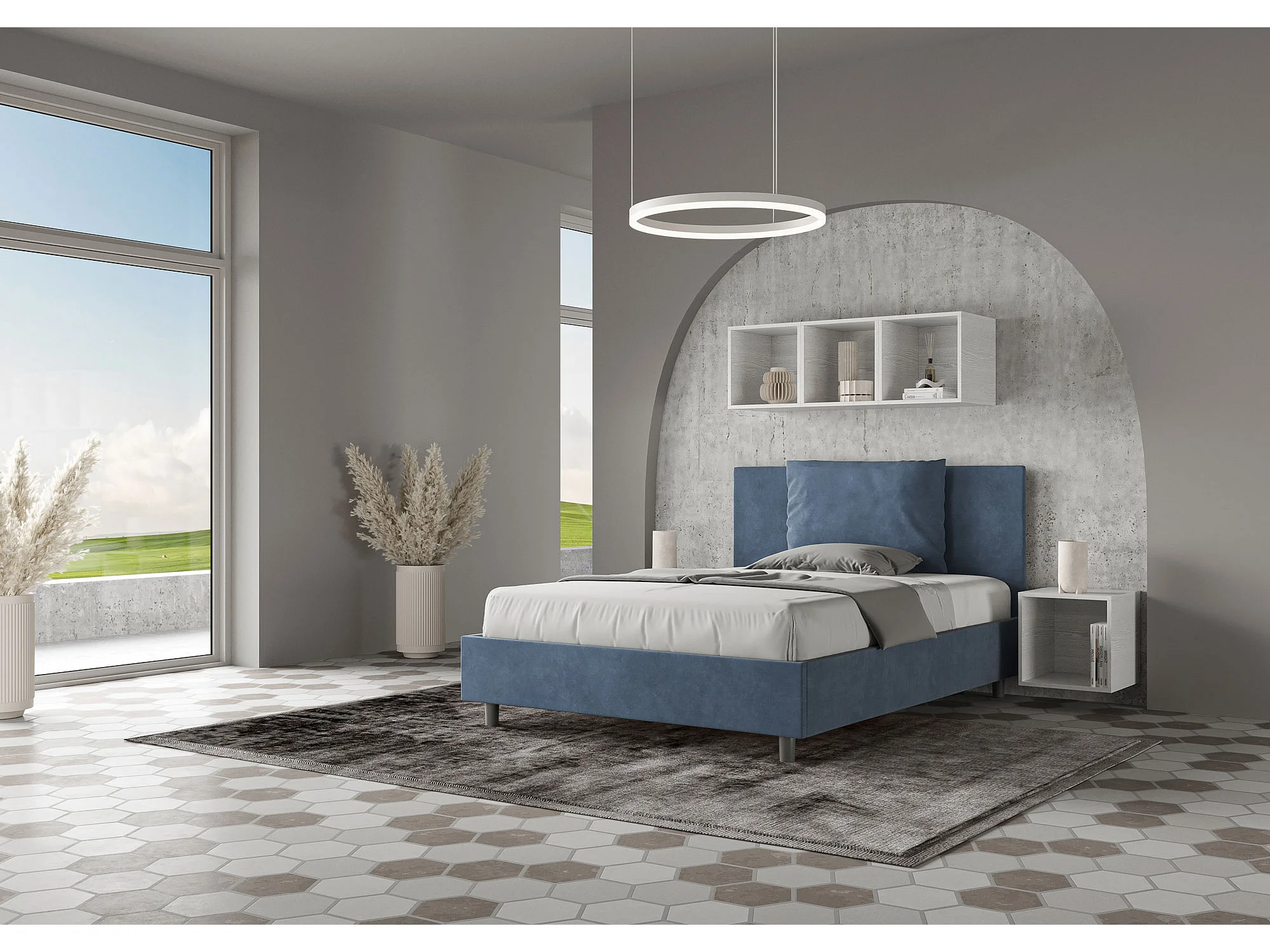 Lit double avec sommier rembourré 140x210 microfibre bleu Antea