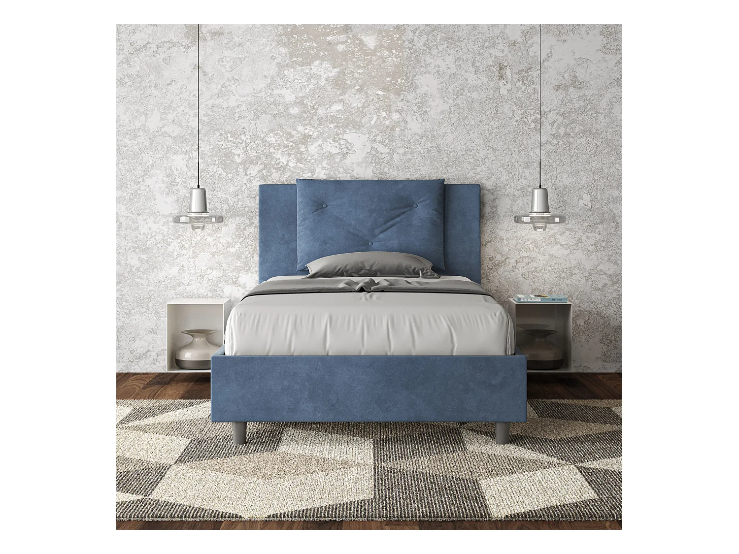 Lit Appia 100x210 bleu sommier et conteneur
