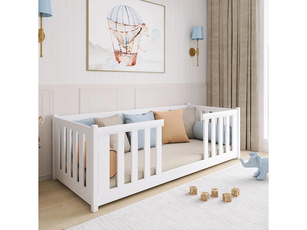 Lit au sol 90x200 sommier inclus Ninon Blanc