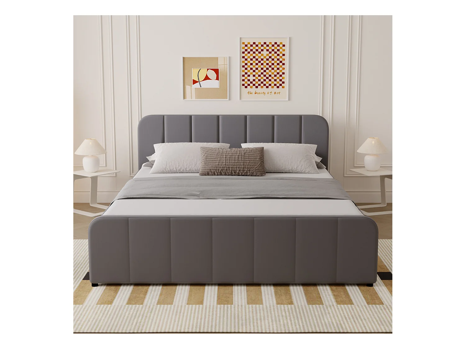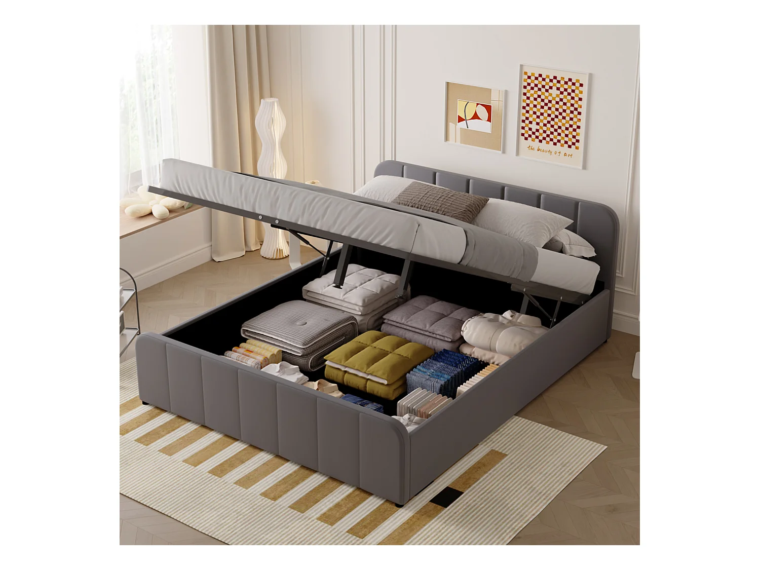 Lit avec coffre de rangement 140x190cm en velours gris TAMPA