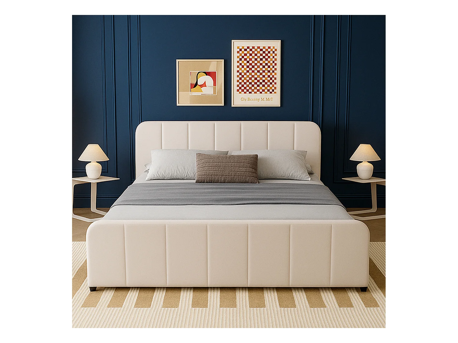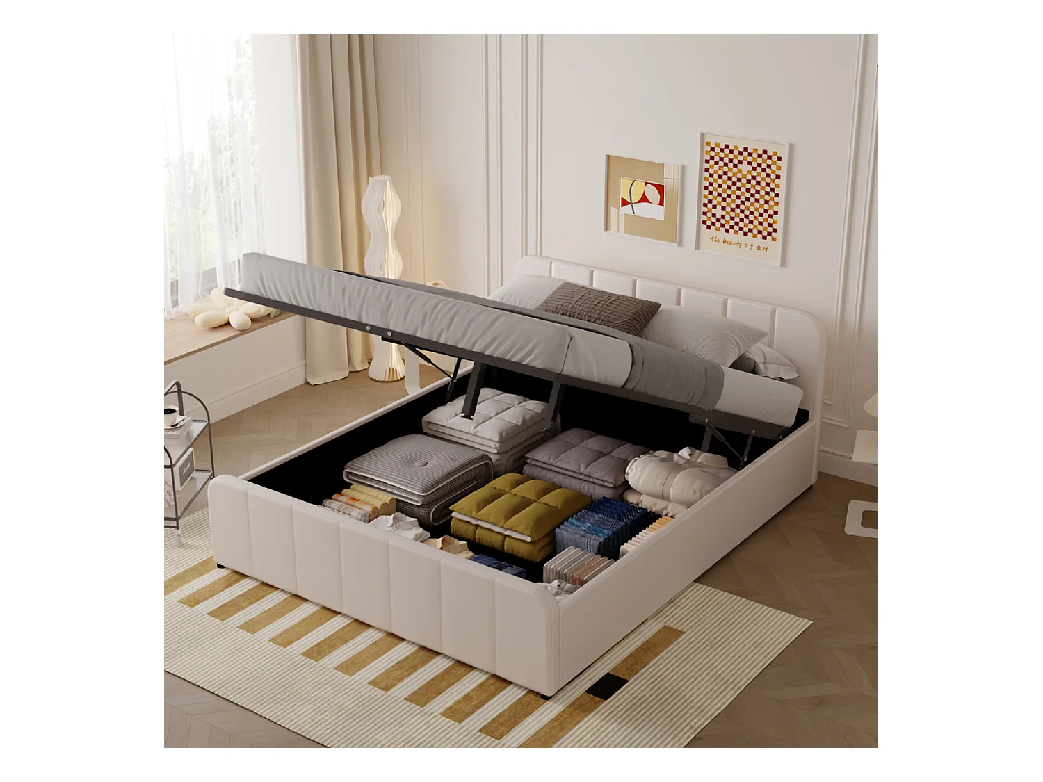 Lit avec coffre de rangement 160x200cm en velours beige TAMPA