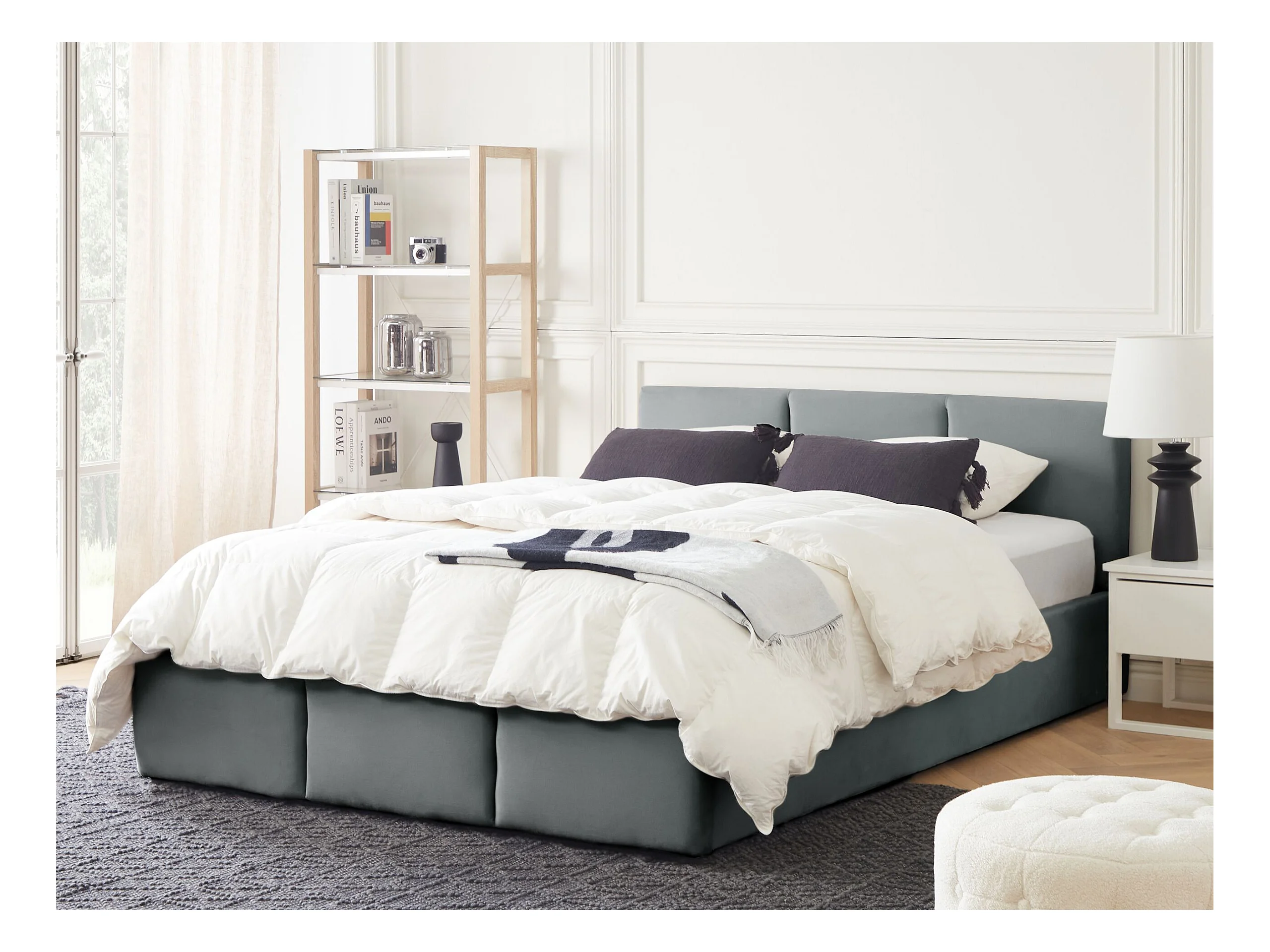 Lit ottoman Velours BOUSSE 140 x 200 cm Gris foncé