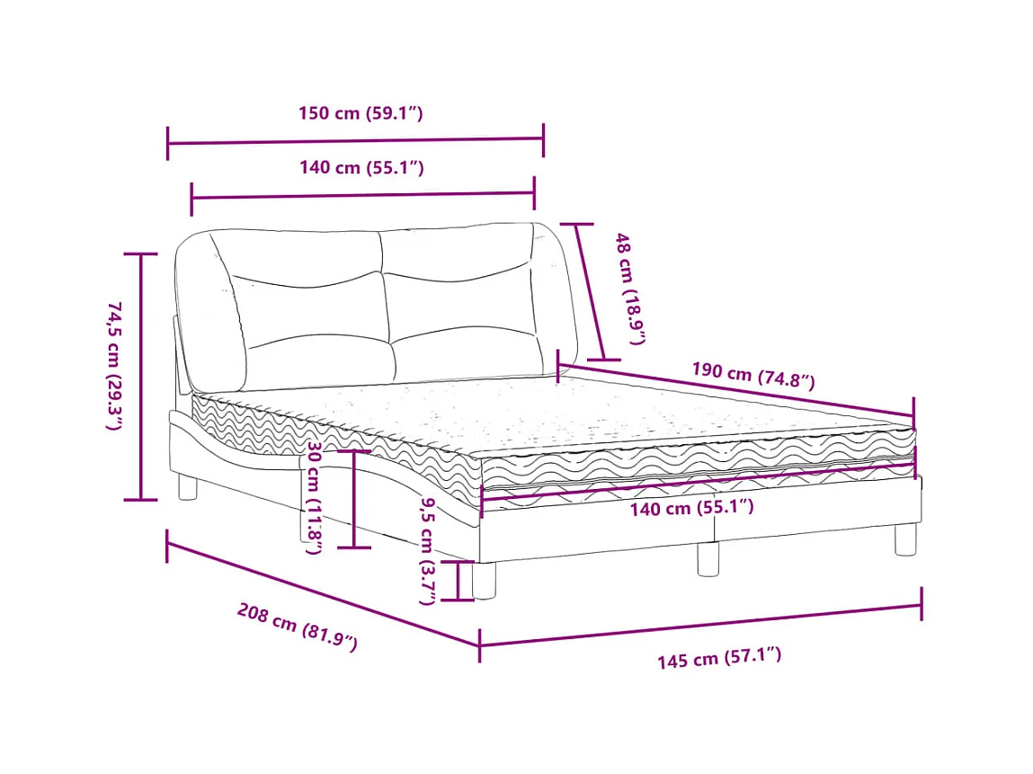 Lit avec matelas Hvar crème 140x190 cm tissu