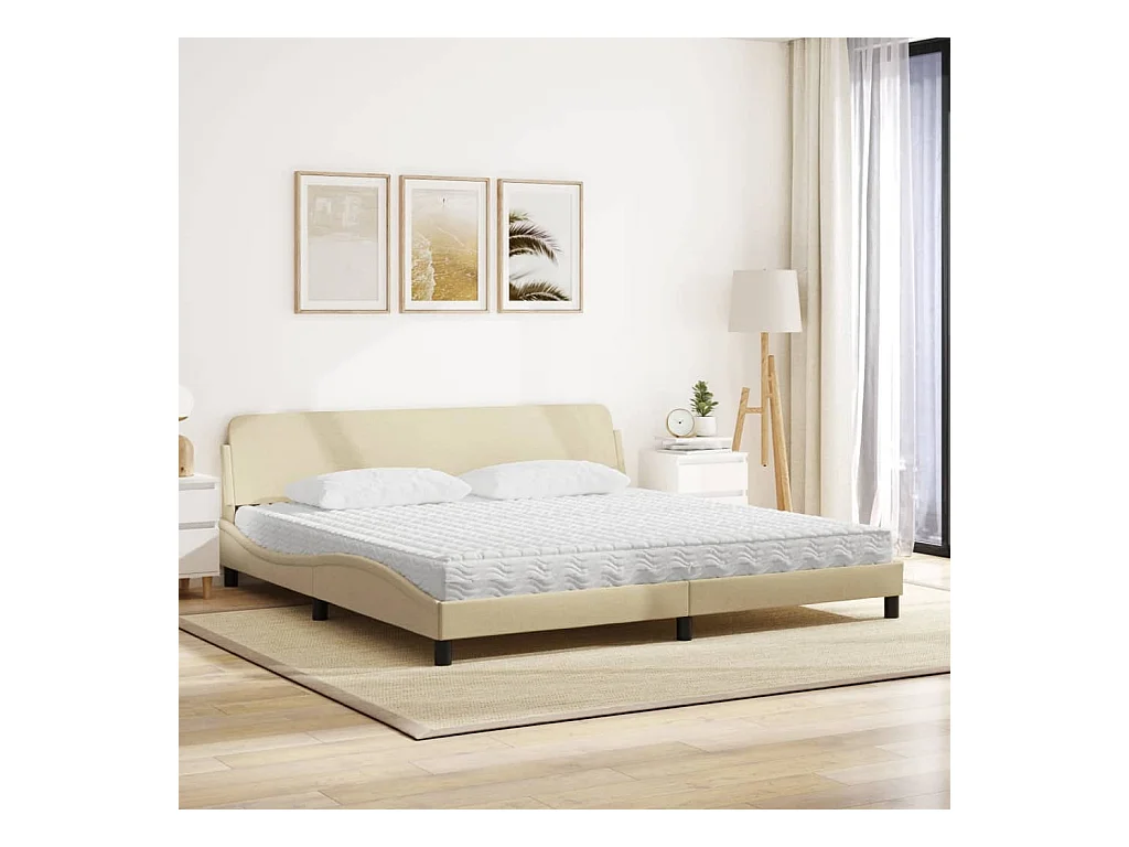 Lit avec matelas crème 200x200 cm tissu