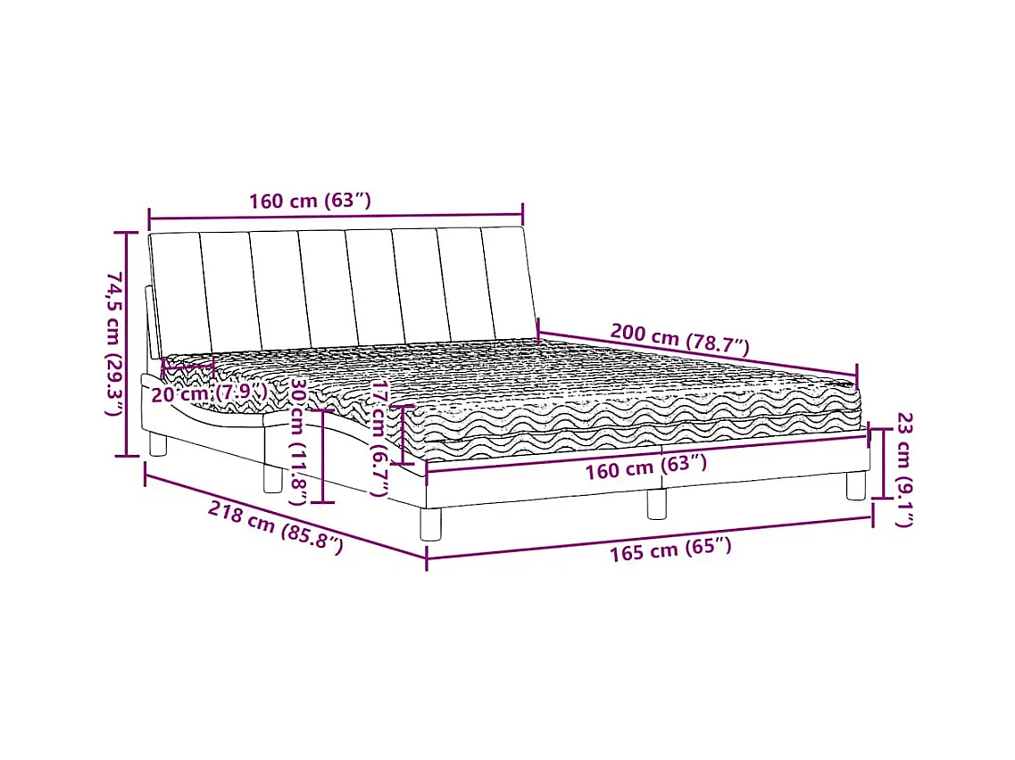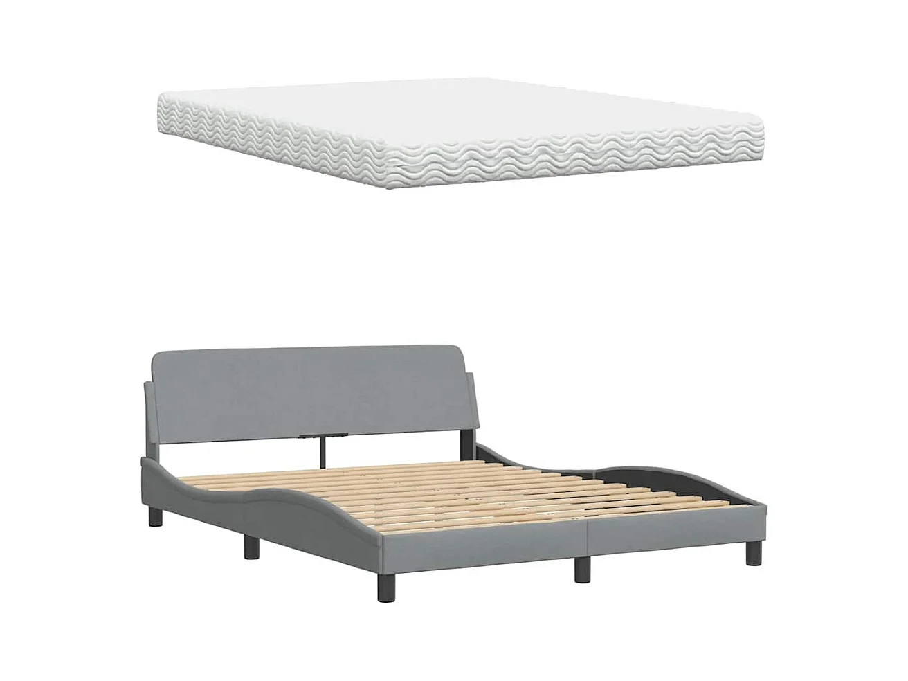 Lit avec matelas Hanko gris clair 160x200 cm tissu