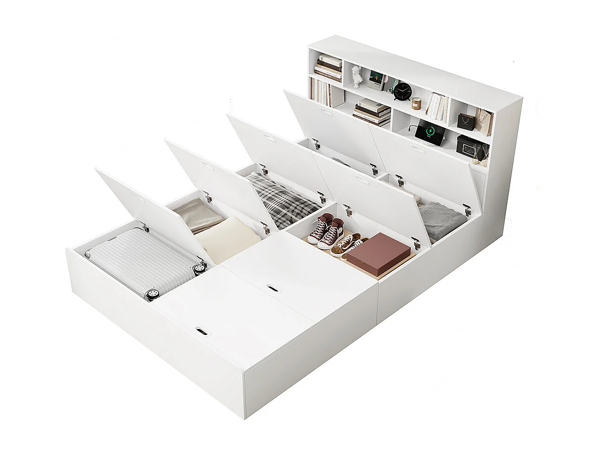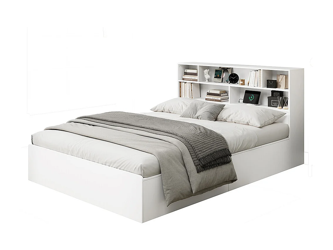 Lit avec rangement 140x200 cm lit double avec port USB avec coffre de rangement sous le lit avec espace de rangement blanc
