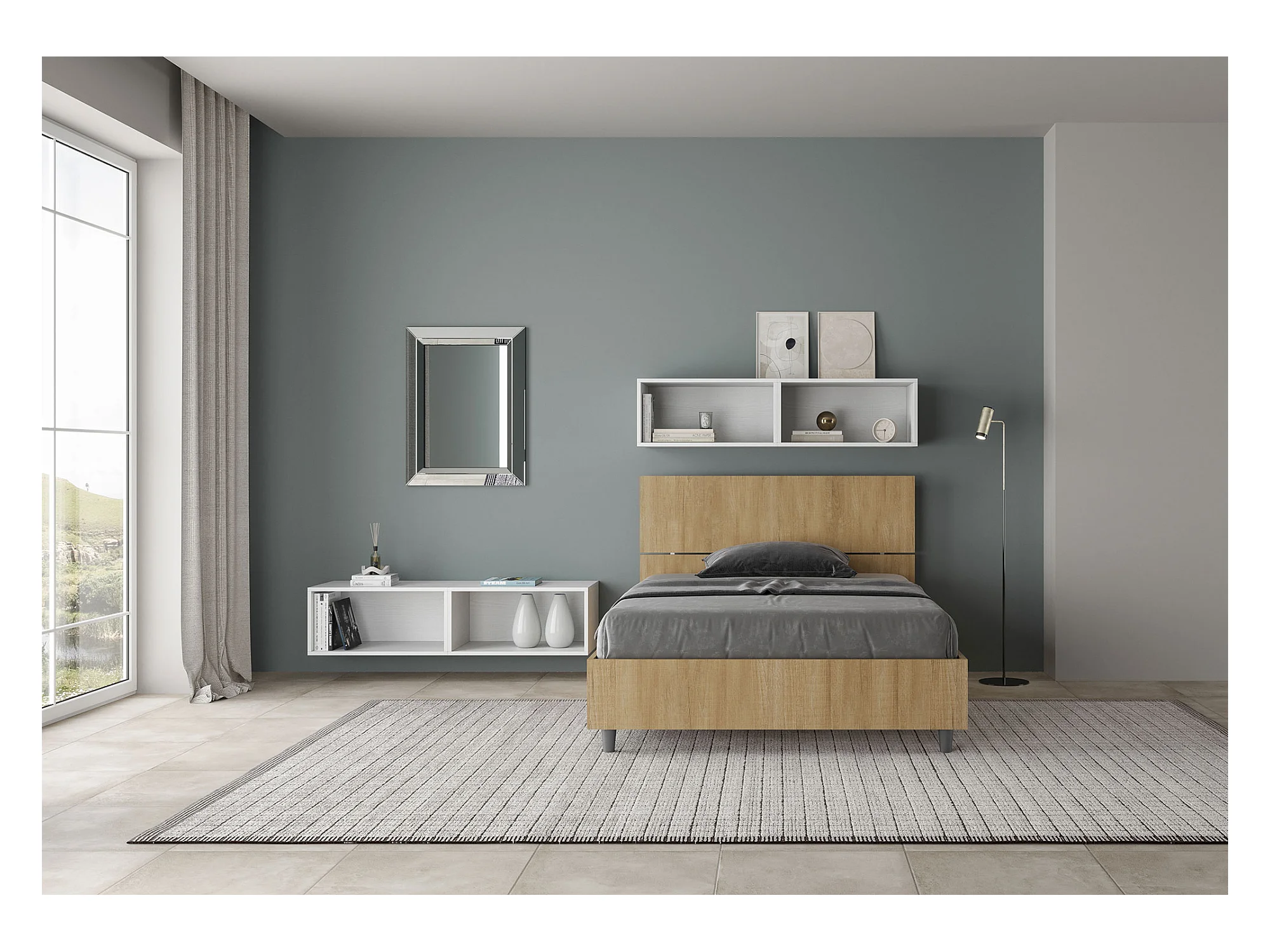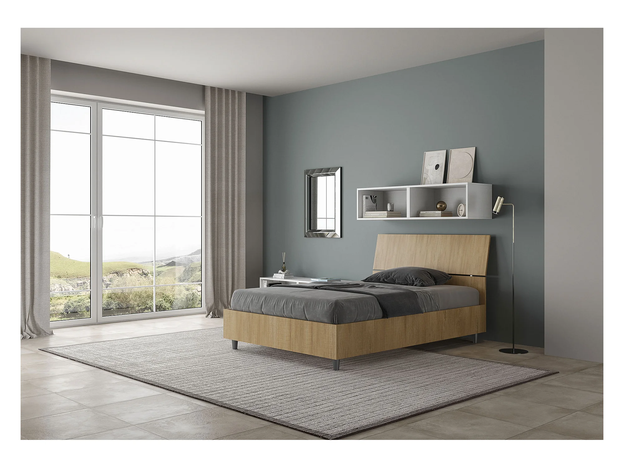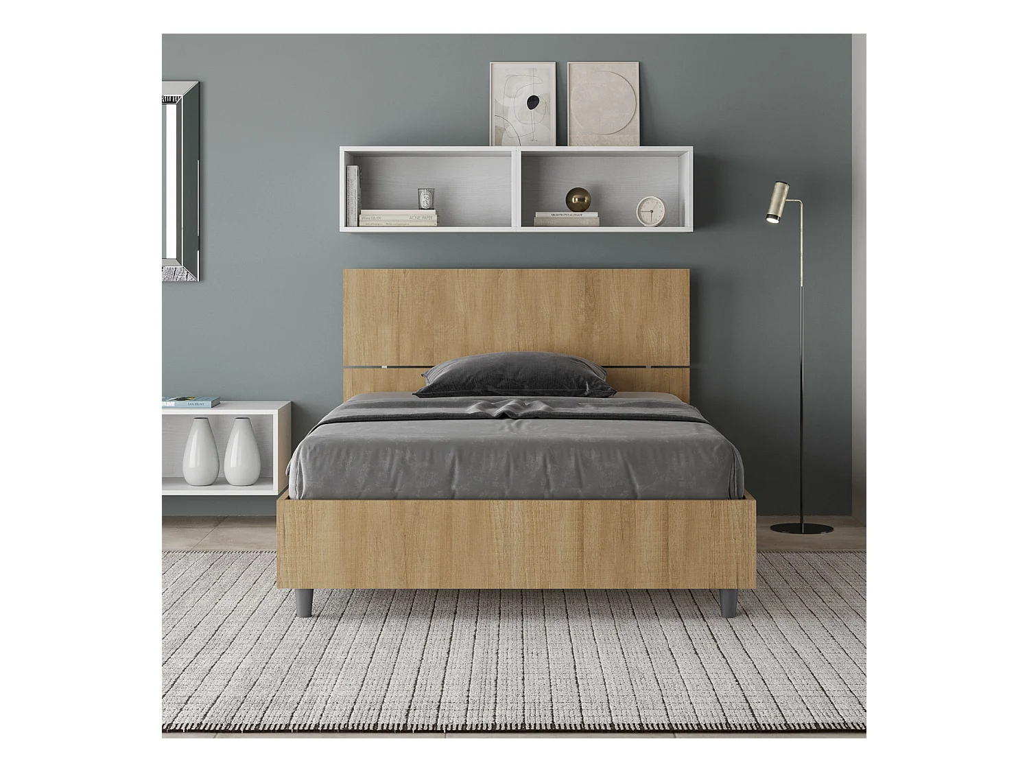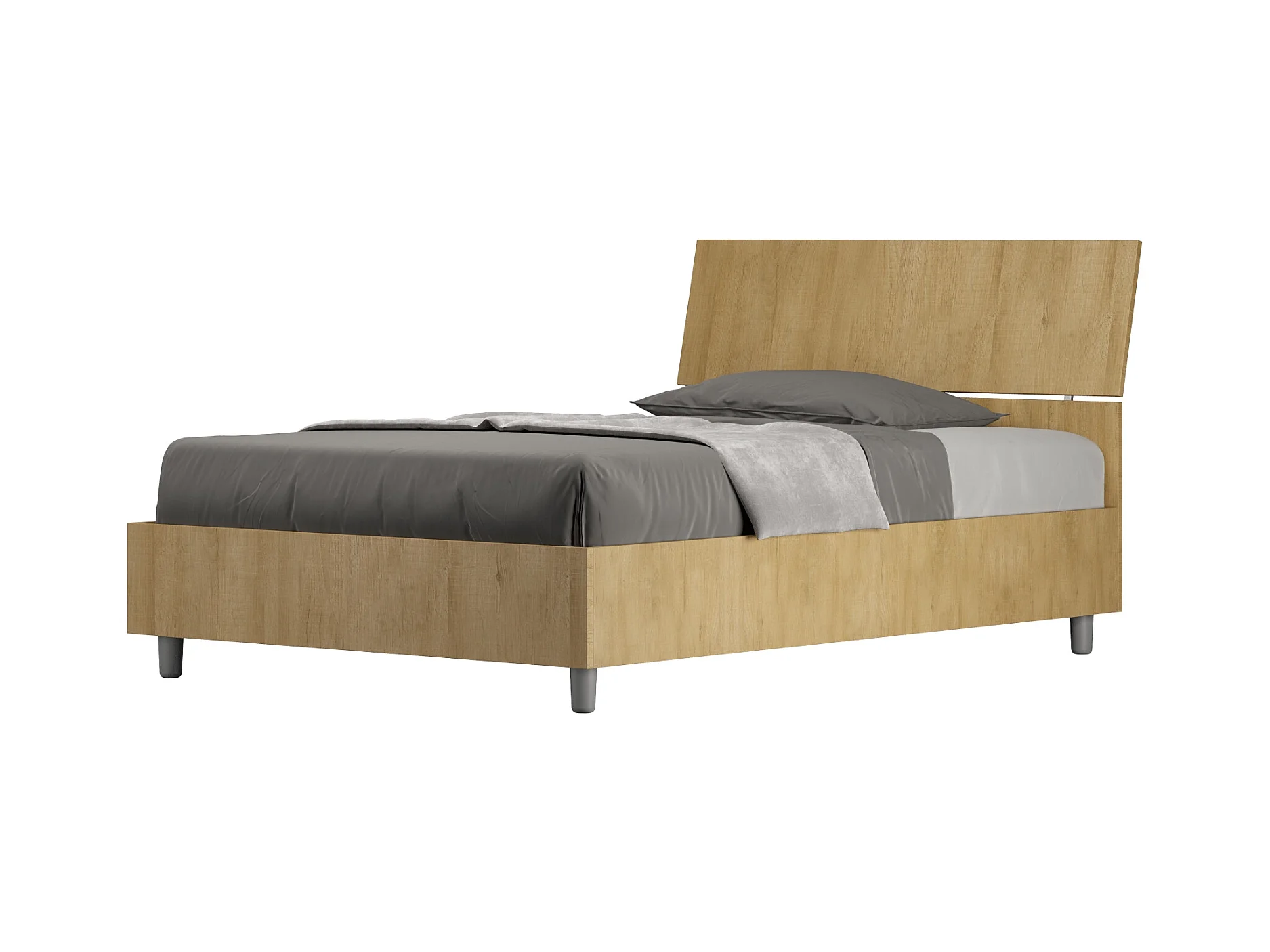 Lit 1 place et demi avec sommier 120x200 tête de lit inclinée chêne nature Demas