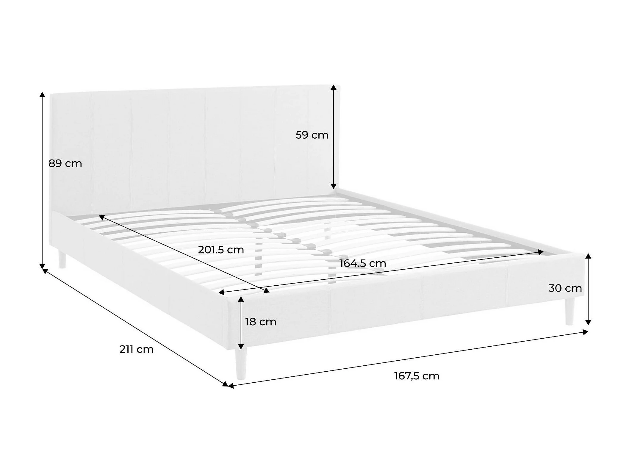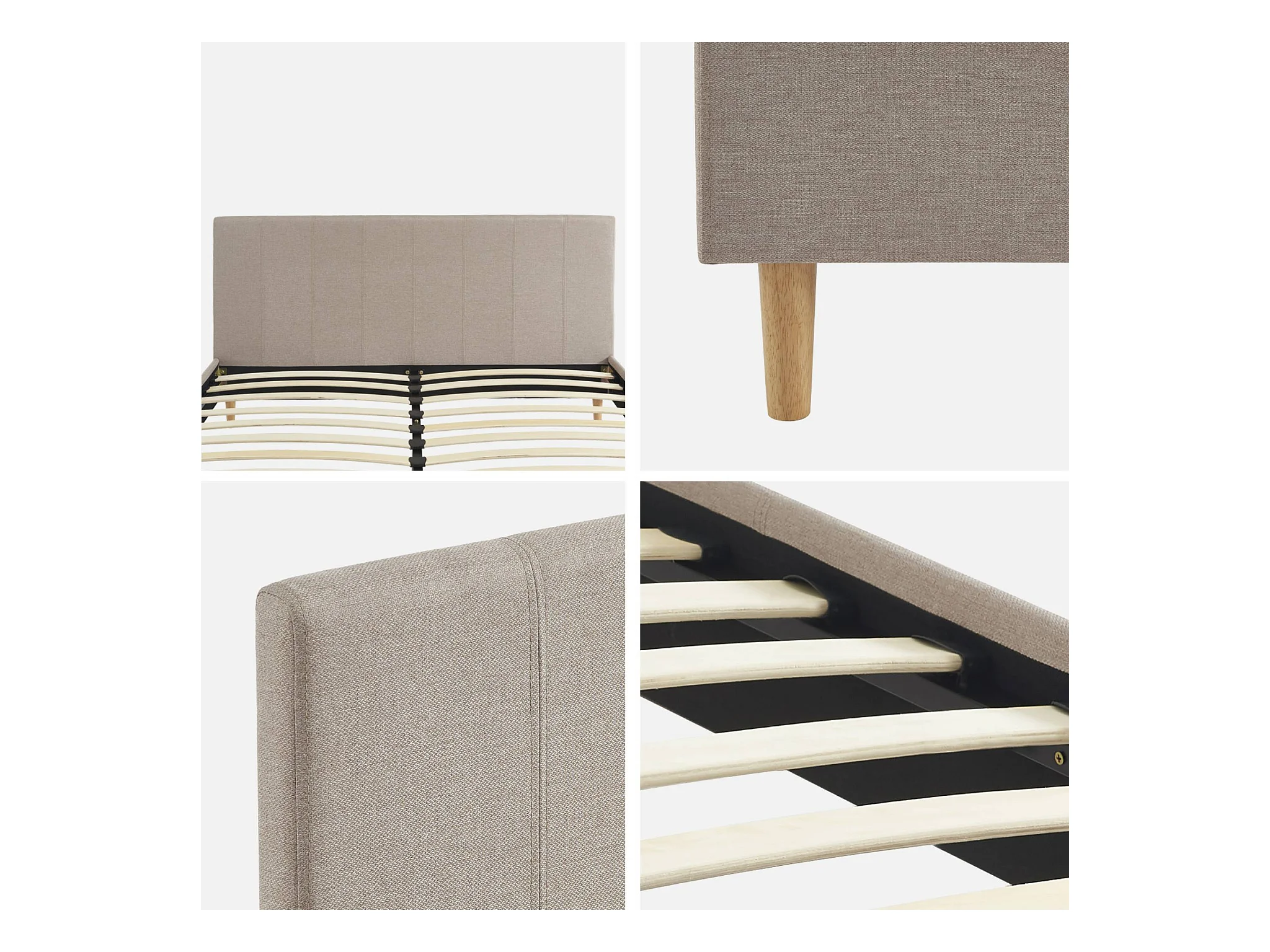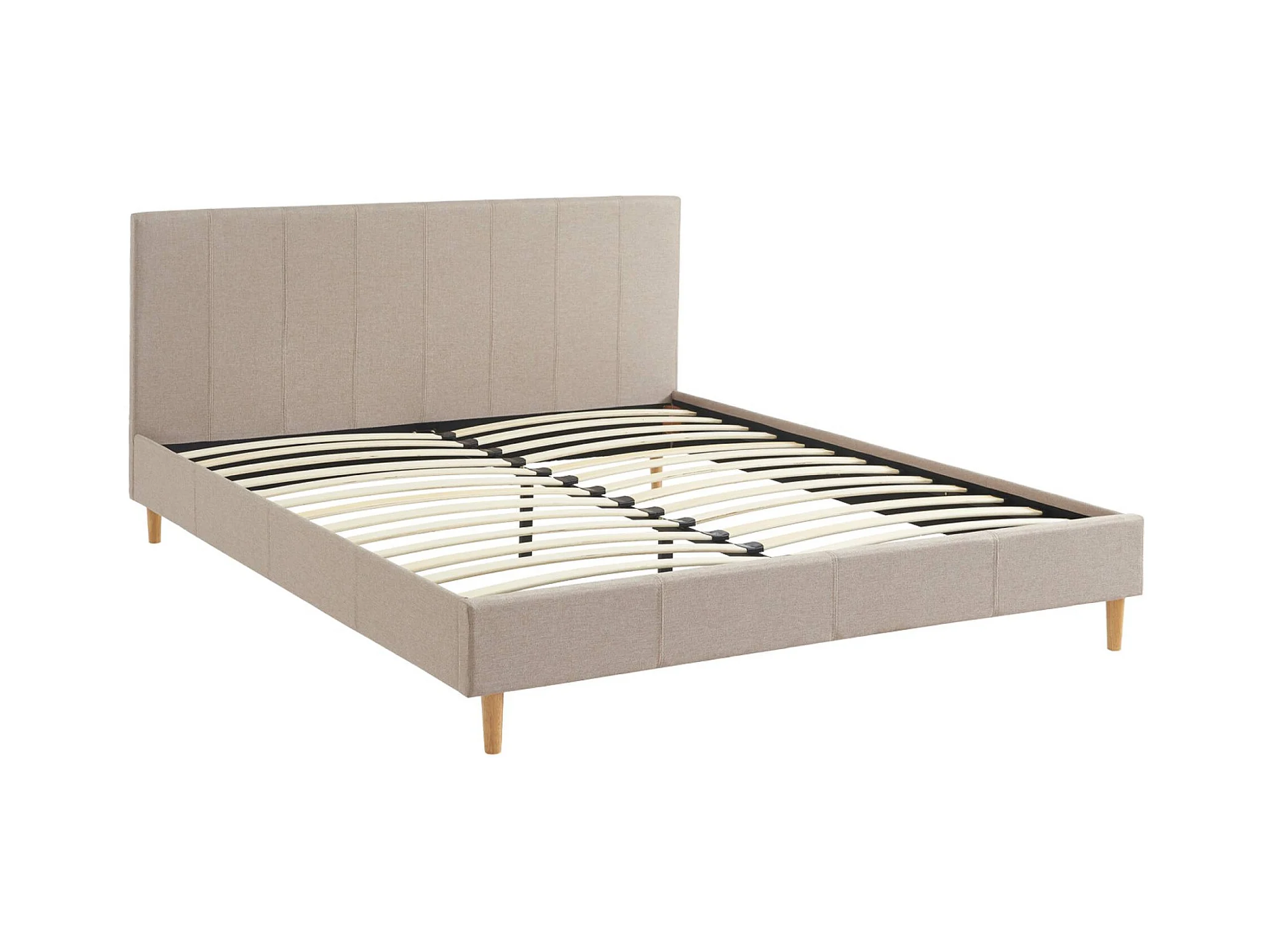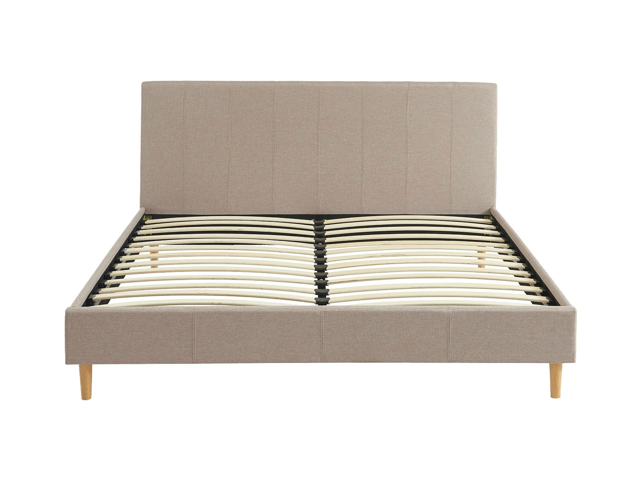 Lit avec sommier à lattes et tête de lit. finition tissu. beige L 211 x P 167.5 x H 89cm