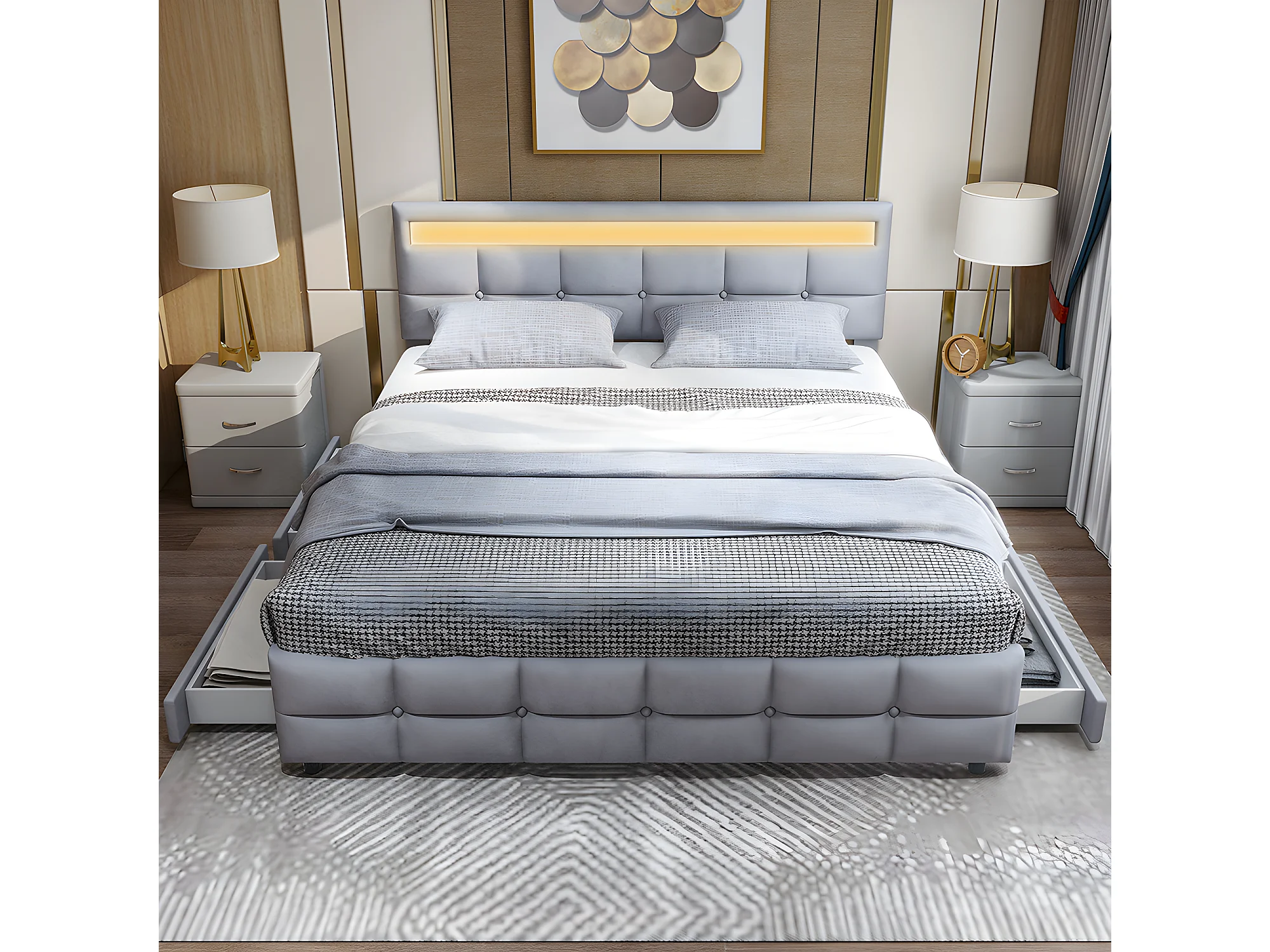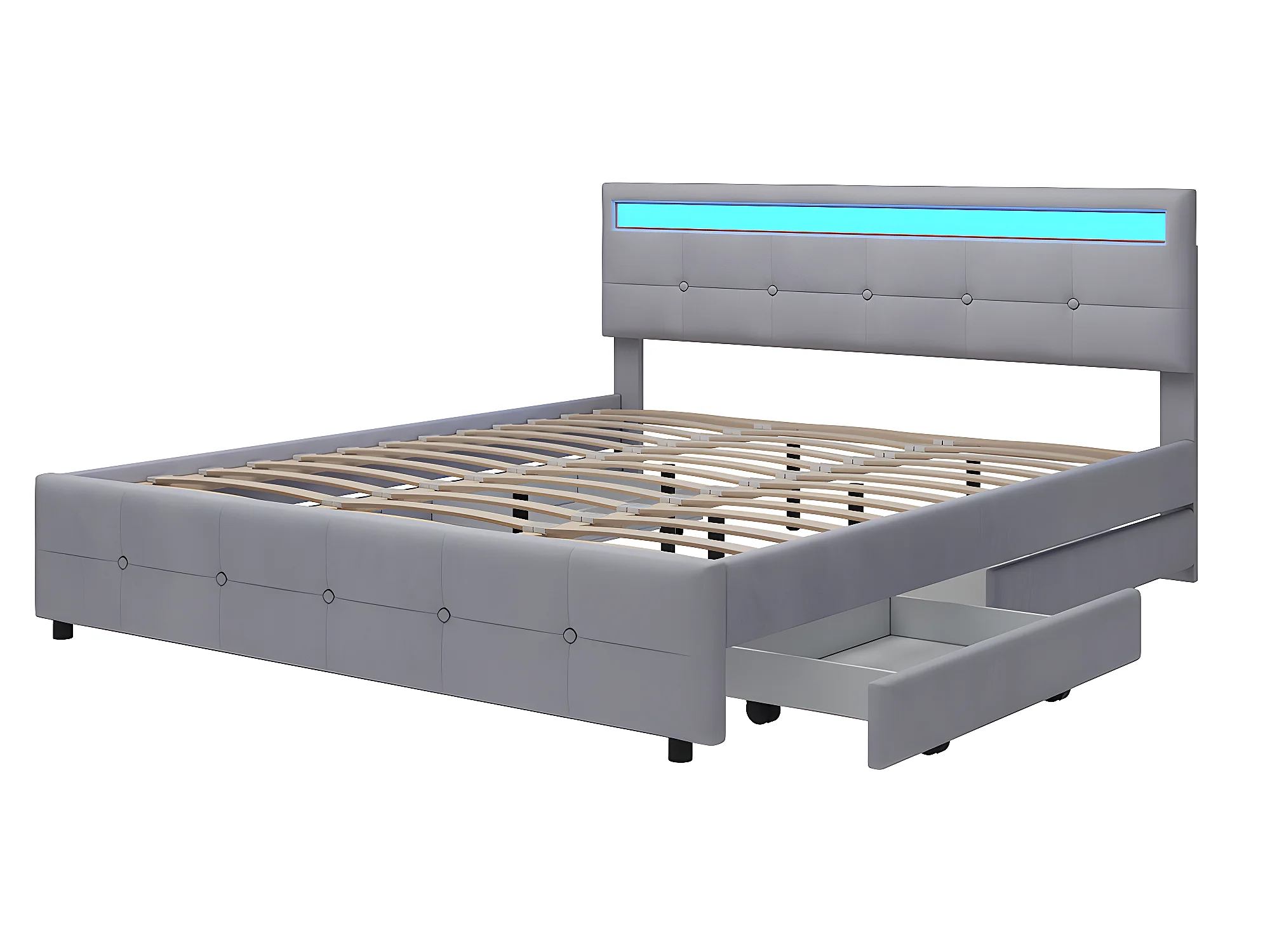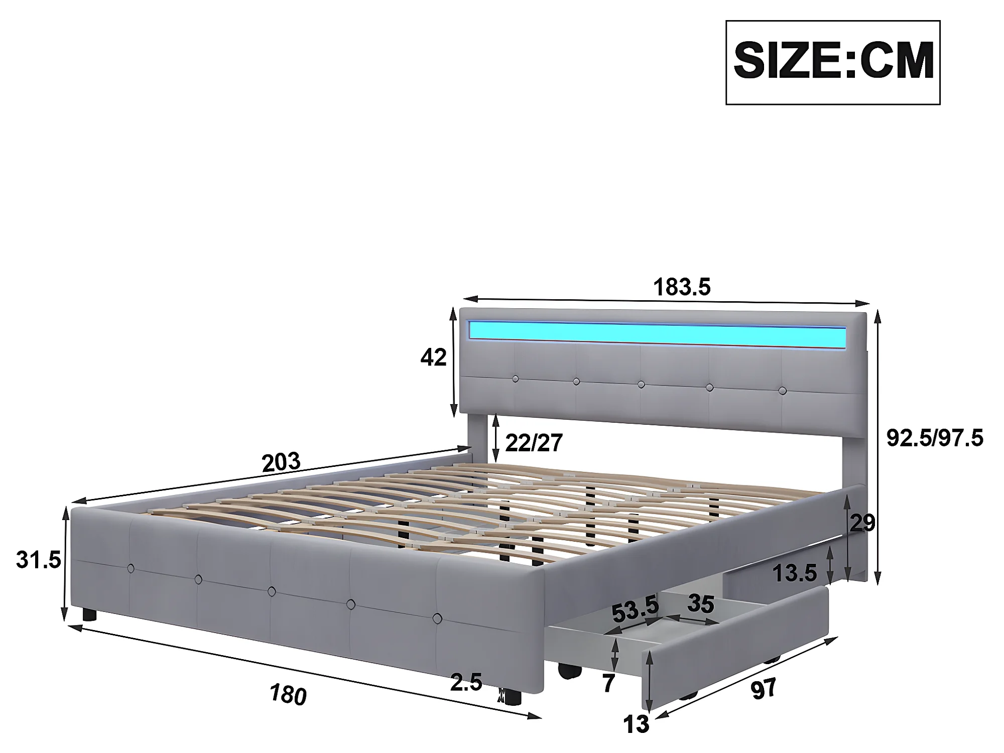 Lit avec tiroirs 180 x 200 cm, Lit double avec 4 tiroirs - Gris velours - Sweiko