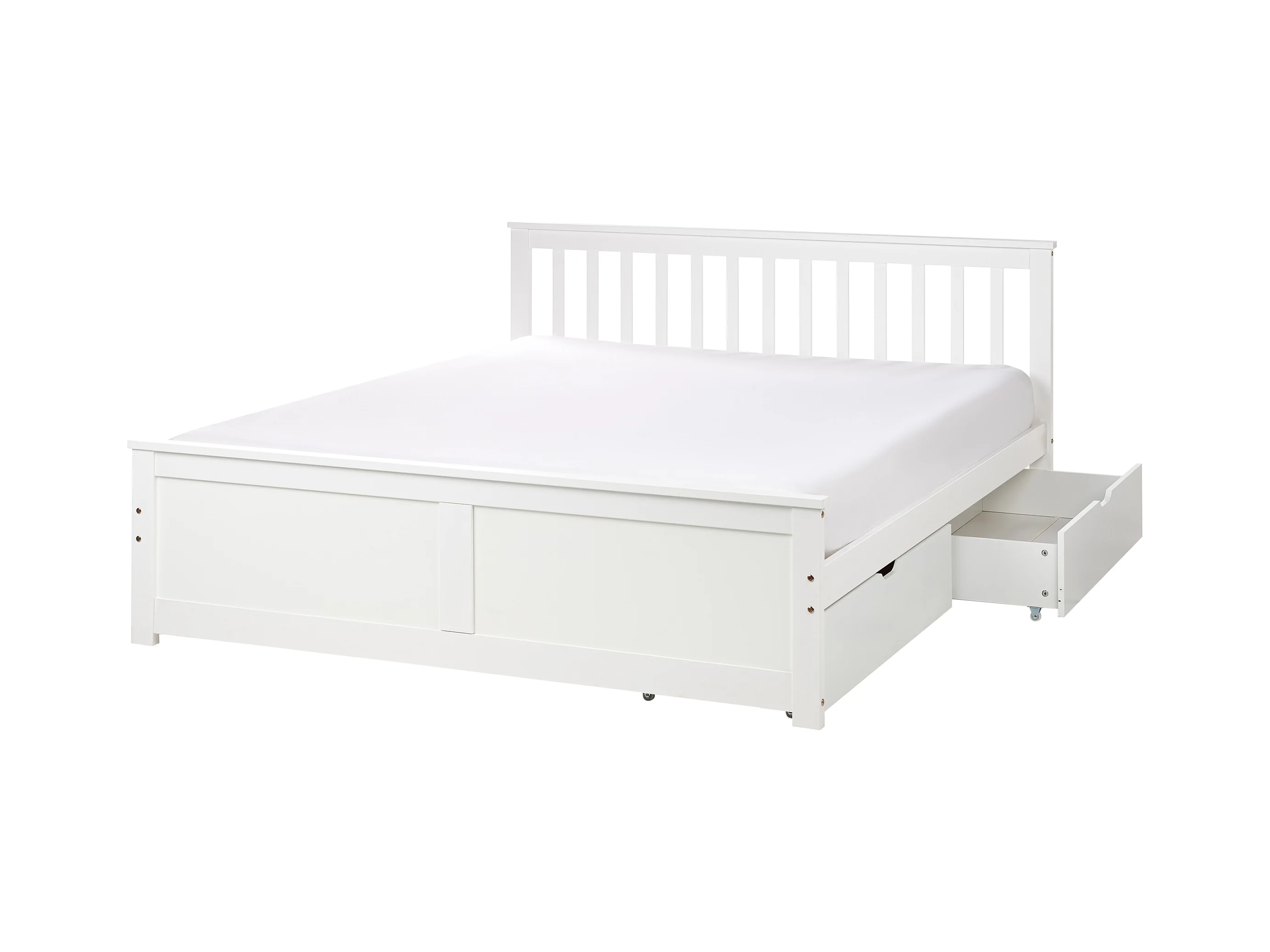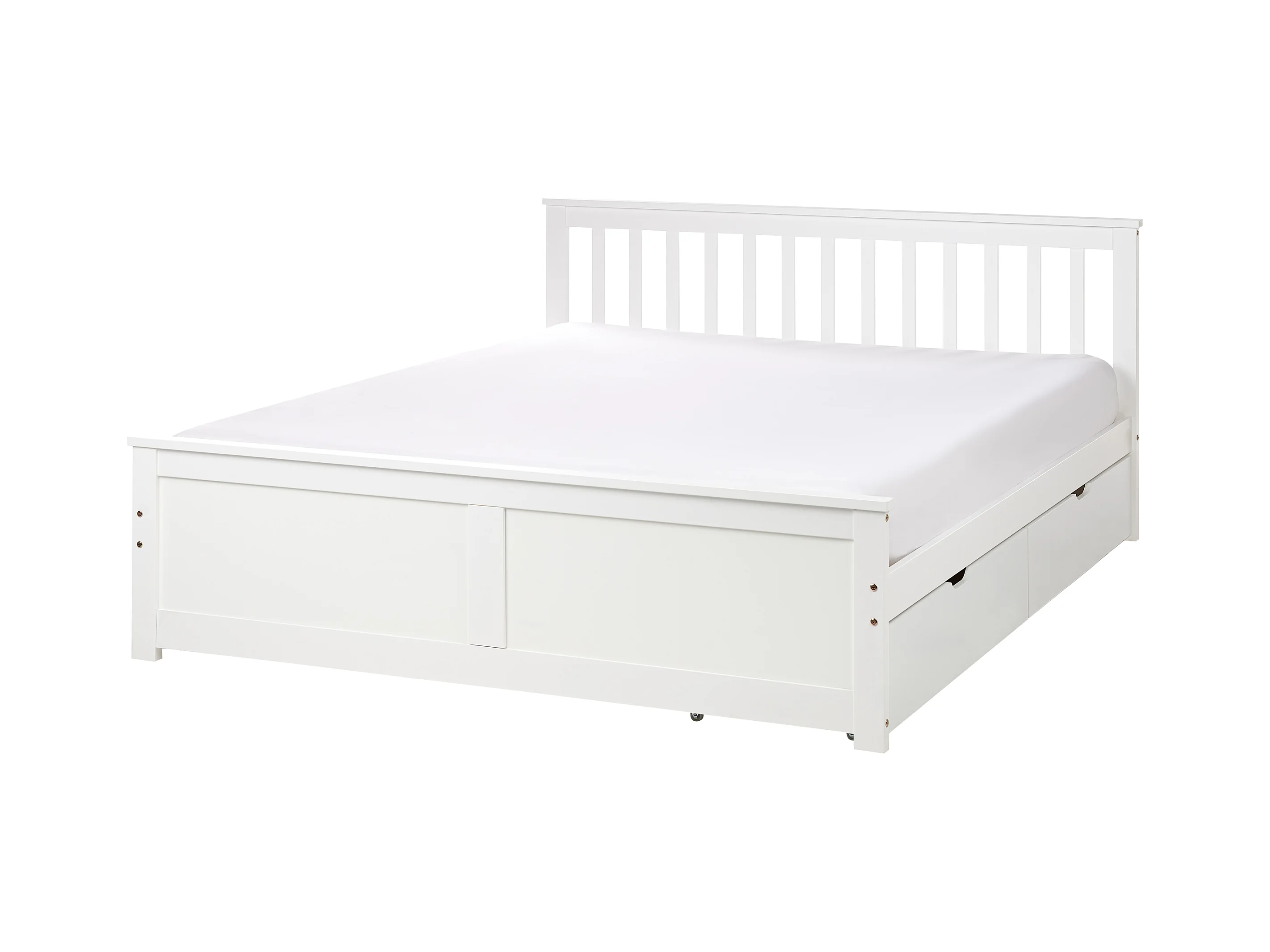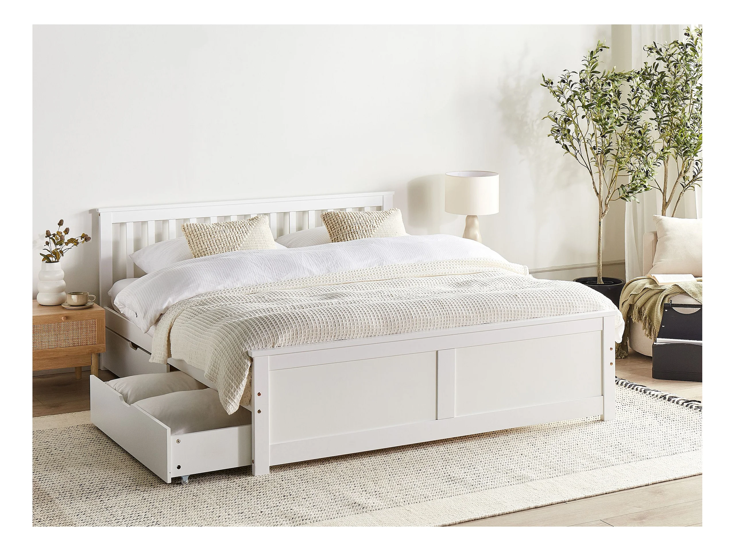 Lit avec tiroirs de rangement Bois de pin OLENDON 160 x 200 cm Blanc