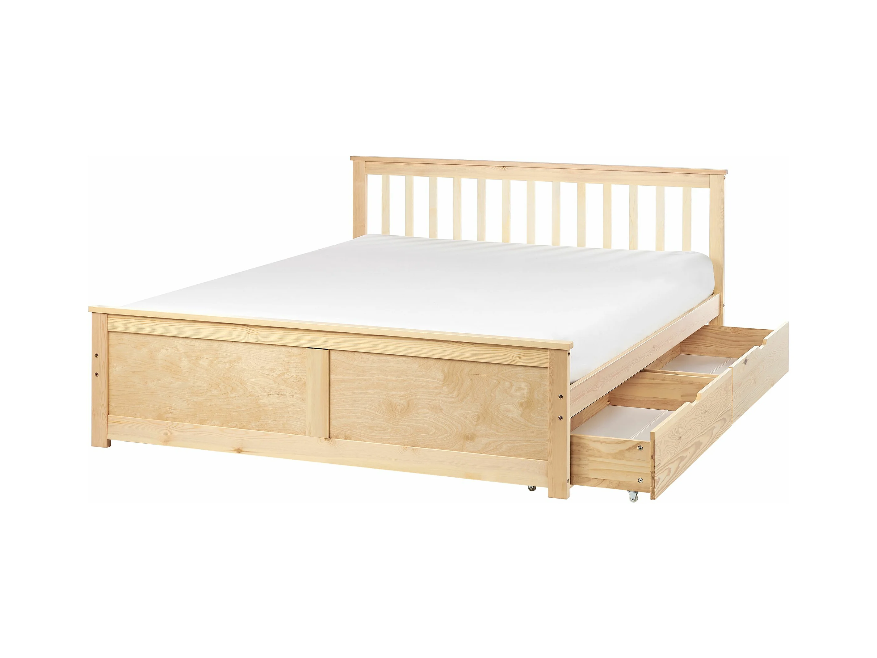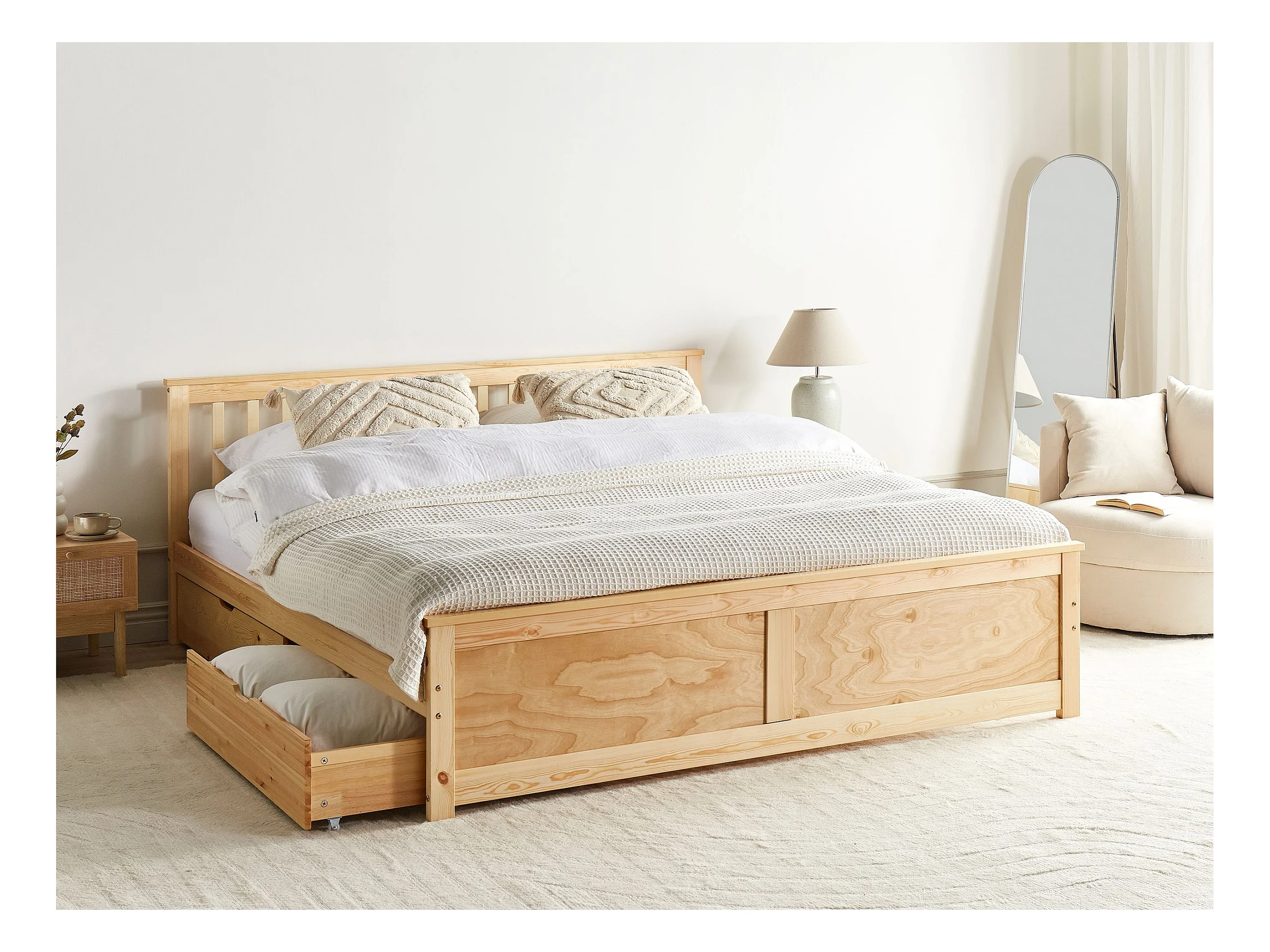 Lit avec tiroirs de rangement Bois de pin OLENDON 160 x 200 cm Marron clair