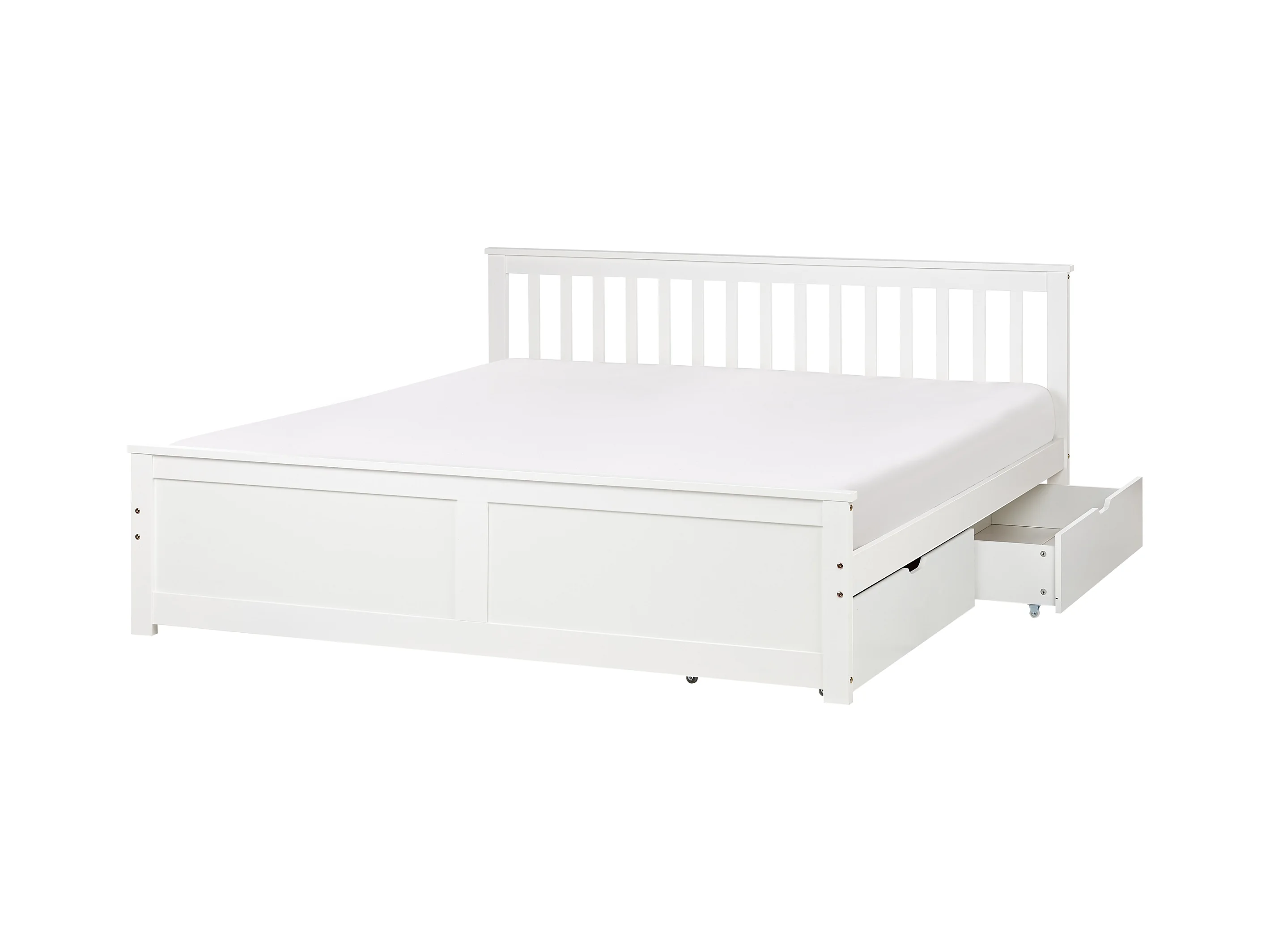 Lit avec tiroirs de rangement Bois de pin OLENDON 180 x 200 cm Blanc