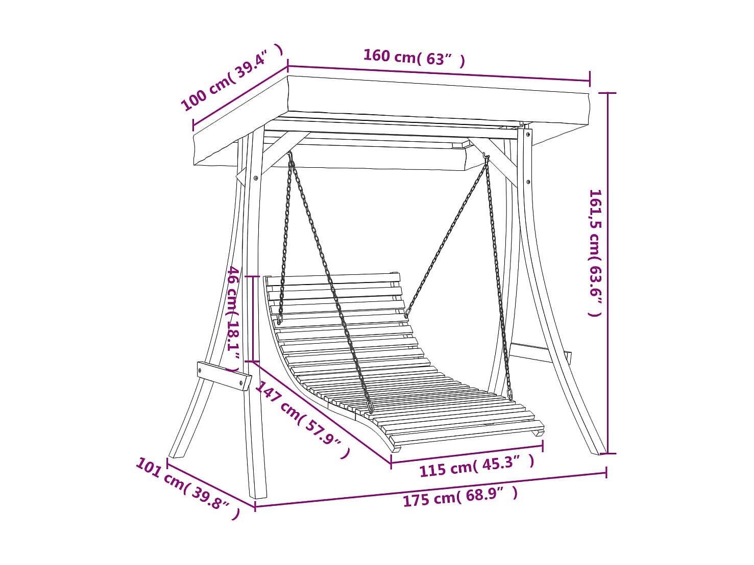 Lit balançoire et auvent bois massif d'épicéa et finition teck