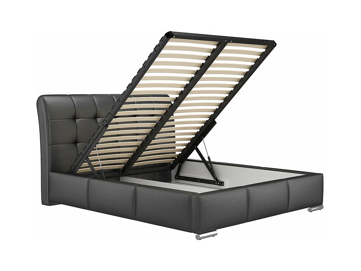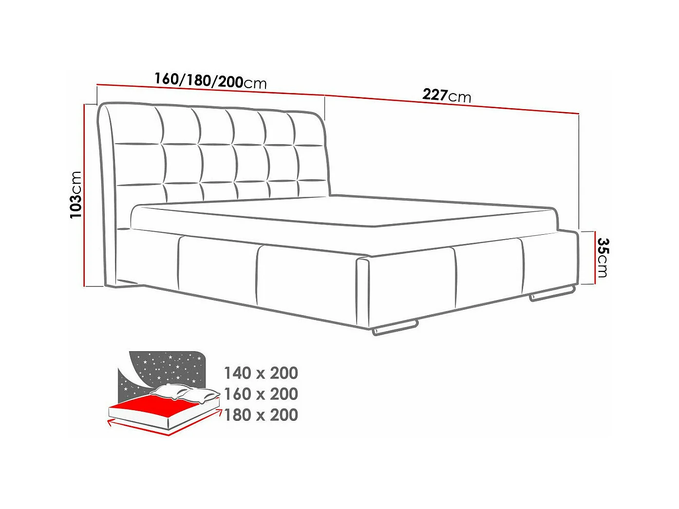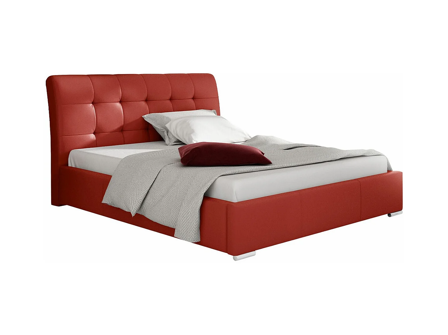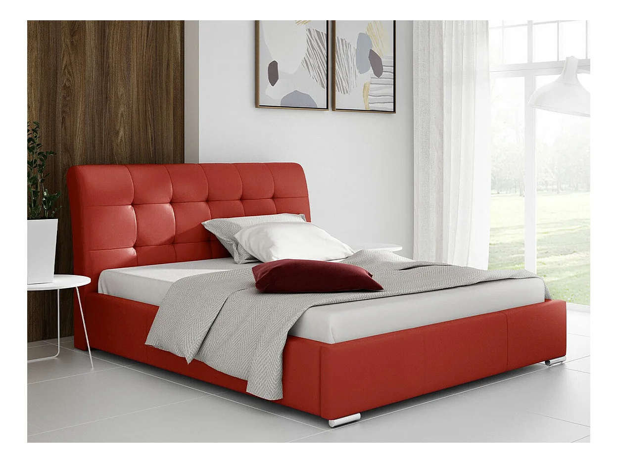 Lit Baltimore 107, Double, Rouge, 180x200, Faux cuir, Sommier à lattes, 200x227x103cm