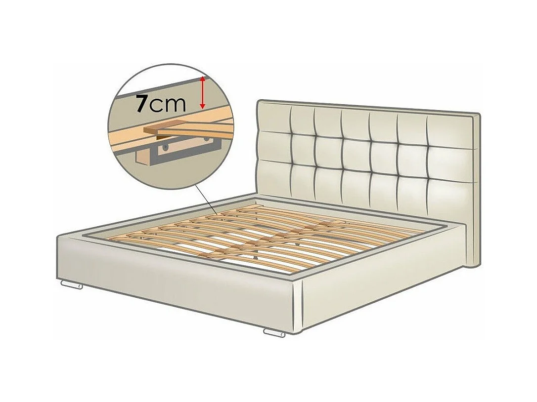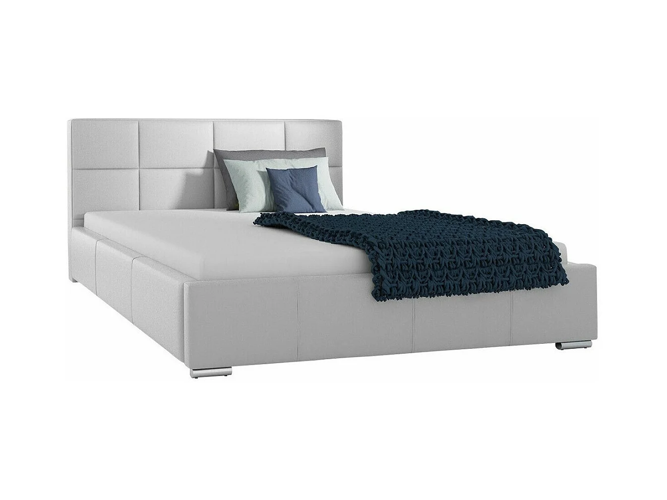 Lit Baltimore 122, Double, Blanc, 160x200, Faux cuir, Sommier à lattes, 178x222x92cm